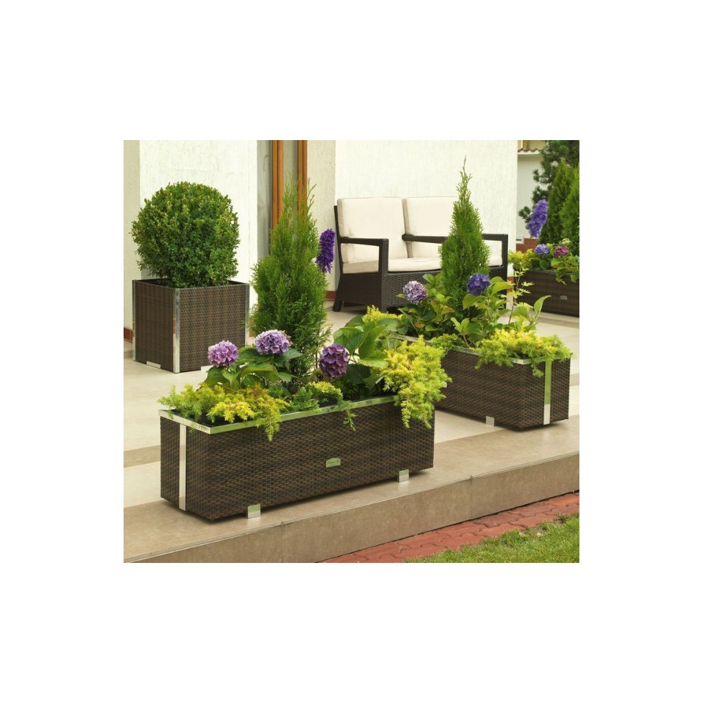 A lenyűgöző SG03170 rattan virágcserép modern, mégis elegáns dizájnt kínál, amely lehetővé teszi egy gyönyörű és időtlen ülőfelület kialakítását. Ezt az egyedi rattan virágcserepet elsősorban modern stílusa és eleganciája jellemzi. Rattan virágcserép SG03170 Kiváló minőségű technorattanból készült, amely ellenáll a mechanikai igénybevételnek és az UV sugárzásnak. Ez egy szintetikus anyag, amelyet kültéri használatra terveztek. A virágcserép belseje horganyzott fémlemezből, a sarkai pedig polírozott alumíniumból készültek.