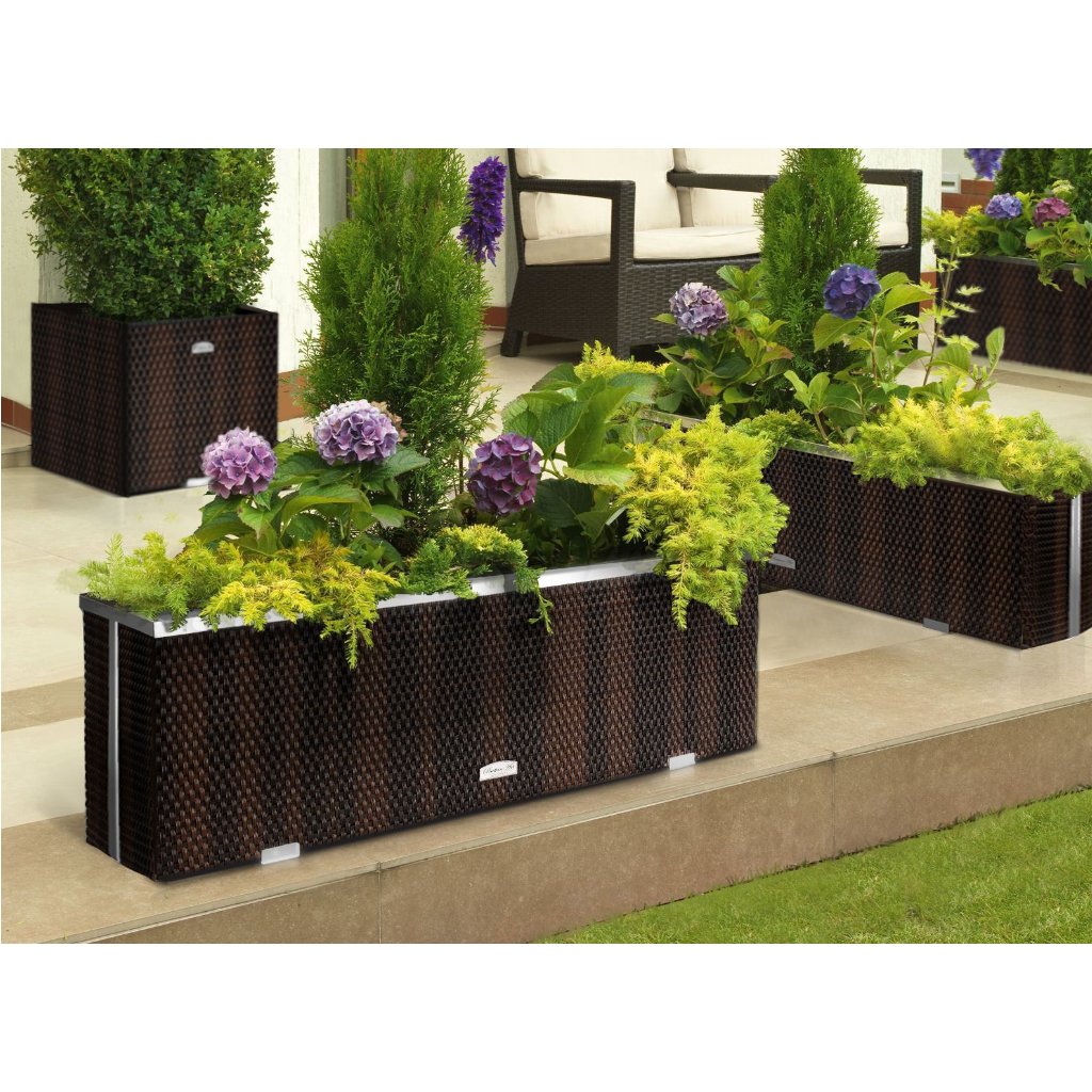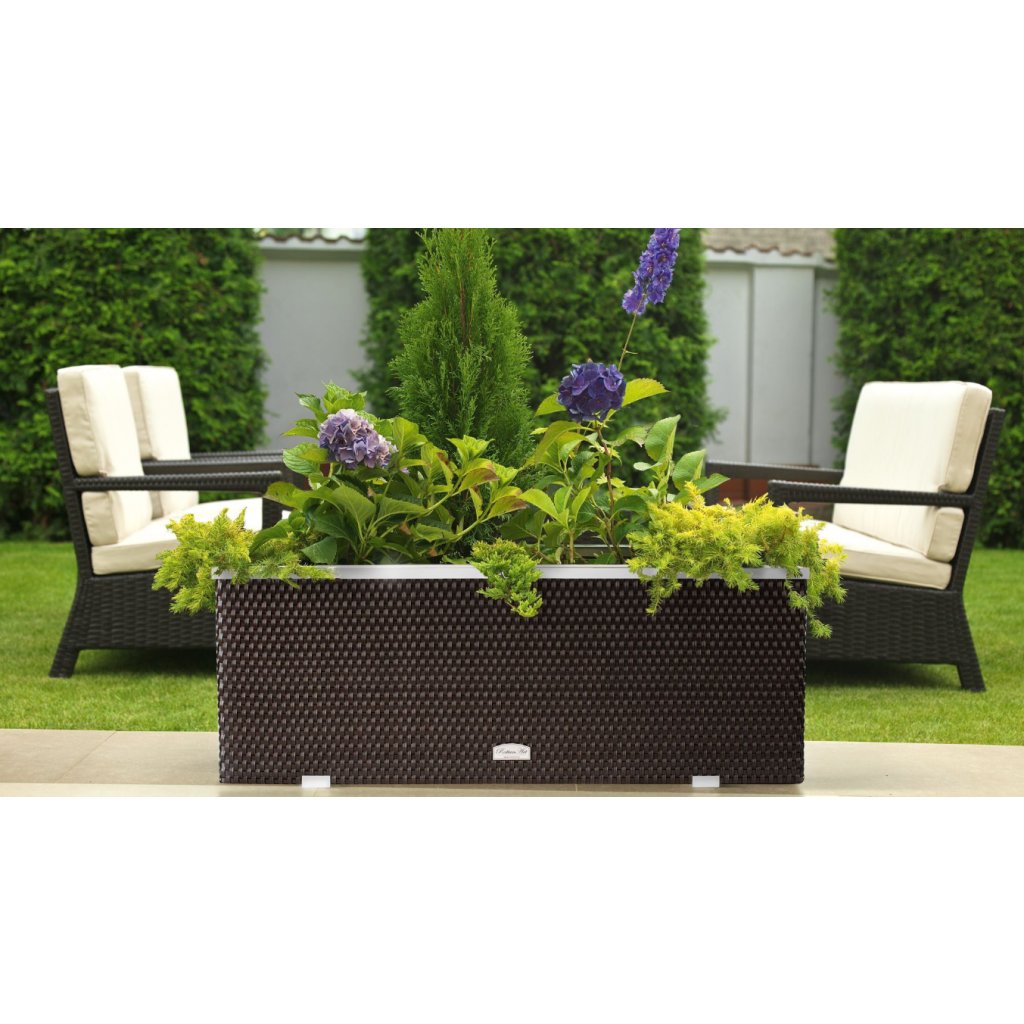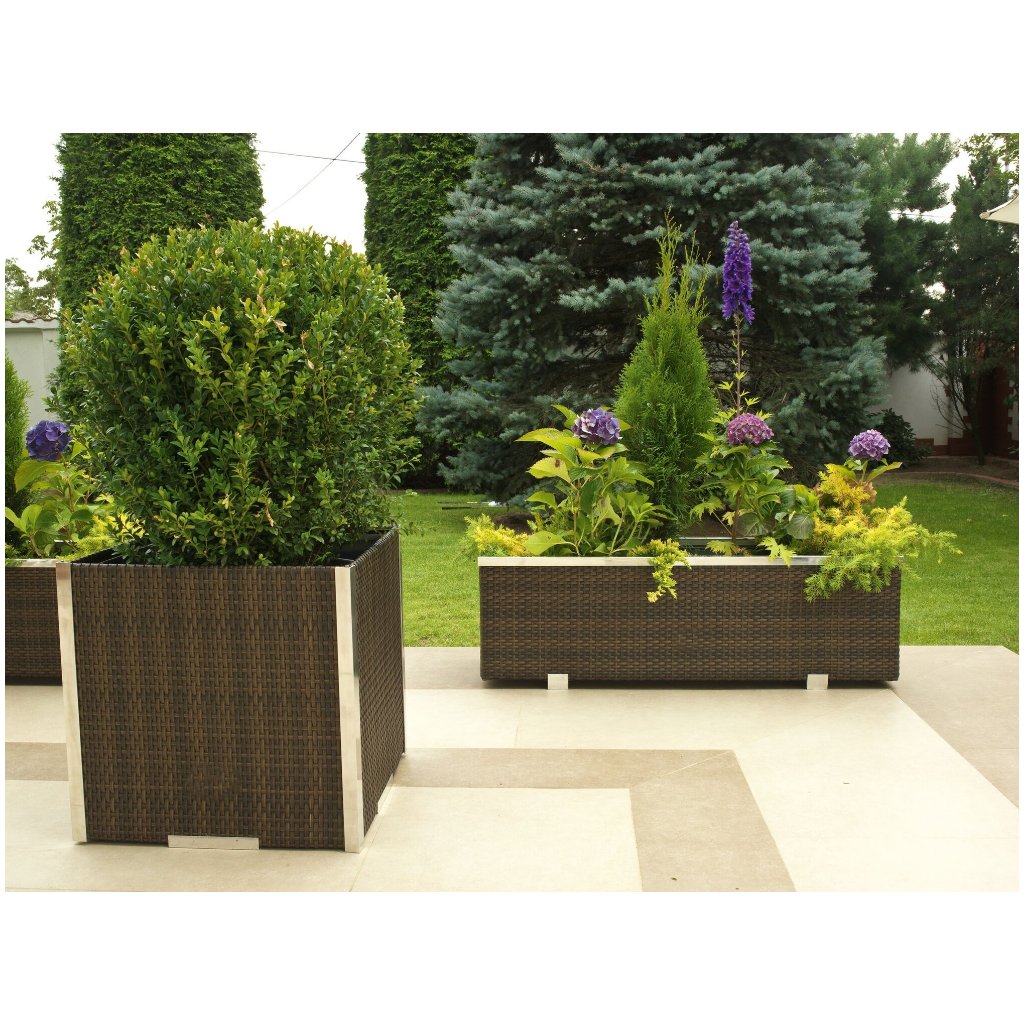 A technorattanból készült virágcserép első pillantásra igazi természetes rattannak tűnik. A rattan virágcserép használat közben nem kopik el és megtartja színét. Éppen ezért a technorattan kiváló választás a kertbe és a teraszra. A rattan virágcserép nyolc szín közül választhat. A növényeket közvetlenül a cserépbe ültetheti. Ez a rattan virágcserép egyedi és ötletes hellyé varázsolja teraszát vagy kertjét a nyári napokon.