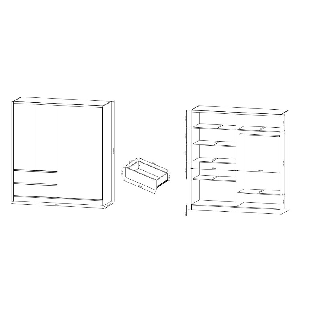 A modern RHEA 200 ruhásszekrény kiváló minőségű, 16 mm vastag laminált lapból és MDF- ből készült. Az egyes részek ABS élekkel vannak ellátva. Az anyagok tartósak és kiváló minőségűek, a tükör pedig a szokásos polírozószerekkel polírozható.