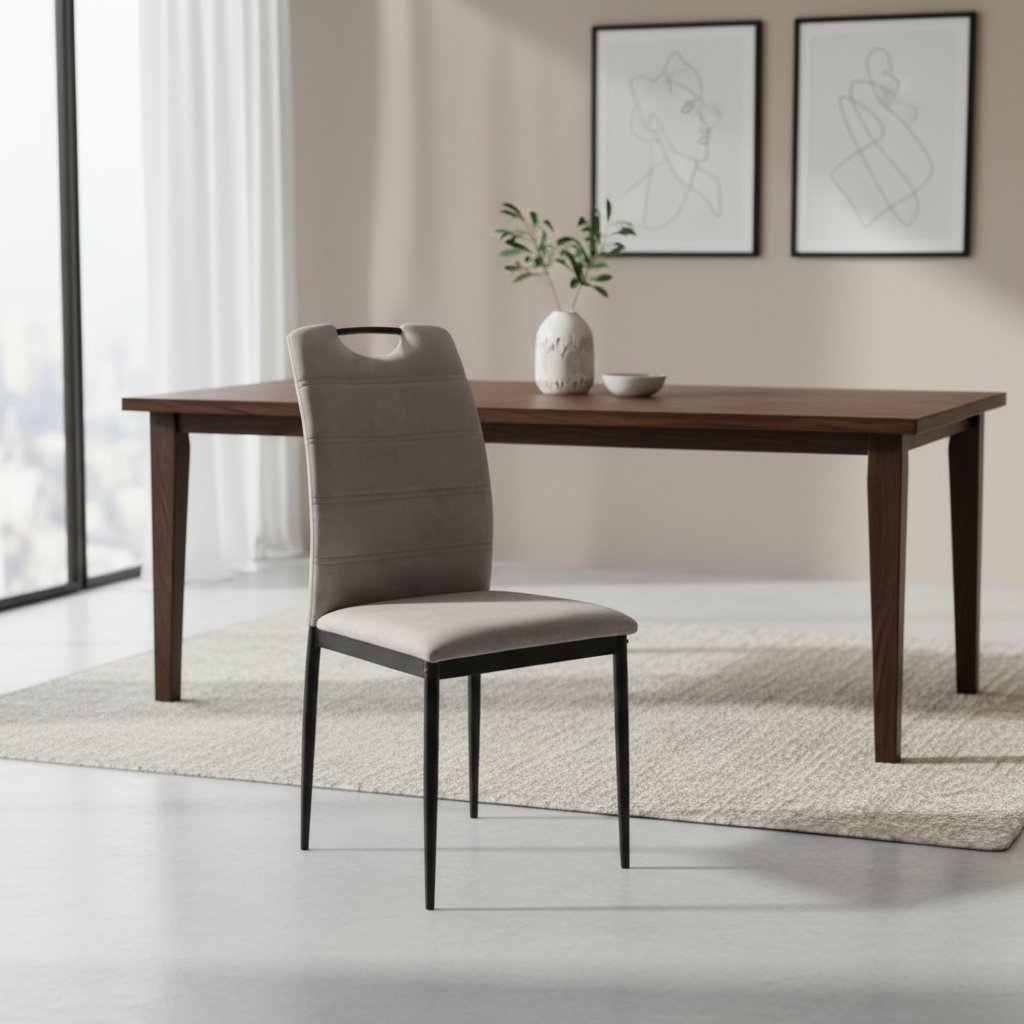 A szék tömör fém lábakon áll, amelyek általános stabilitást és szilárdságot biztosítanak a széknek. Az étkezőszék AKSAMIT bársonyhuzattal van kárpitozva, amely kellemes tapintású , ellenáll a szennyeződéseknek és a karcolásoknak. Tisztítása egyszerű. Ajánljuk az univerzális CAUCH tisztítószert | 500 ml kínálatunkból .