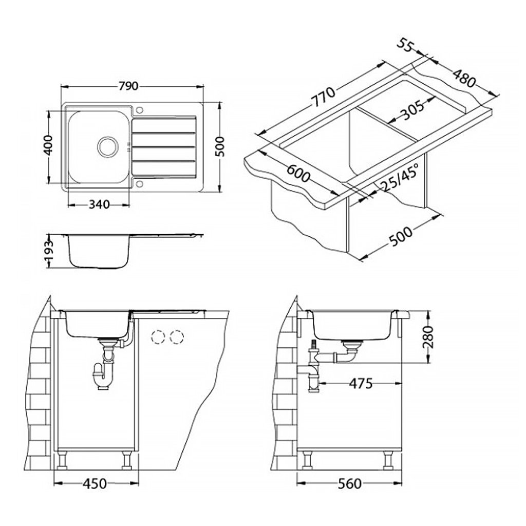 A modern Line 80 Maxim mosogatót elsősorban minősége és praktikussága jellemzi. A mez normál munkalapra való felszerelésre szolgál, legalább 50 cm-es szekrényszélességgel. A mosogató kétoldalas.