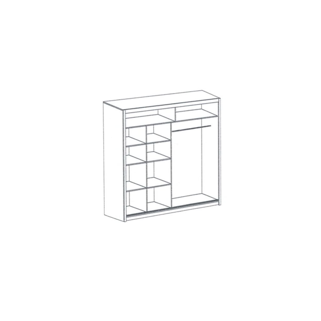 A modern LIZBONA tolóajtós gardrób domináns megjelenést kölcsönöz a hatalmas tükörnek, amely optikailag megnöveli a teret. A gardrób hatalmas tárolóhelyet kínál ruhák tárolására, ugyanakkor praktikus polcokat is kínál különféle apró tárgyak vagy tárolandó dolgok tárolására. A gardrób egy polcra és egy vállfára van osztva. A sonoma tölgyfa színvilág egyediséget és finom eleganciát kölcsönöz a gardróbnak.