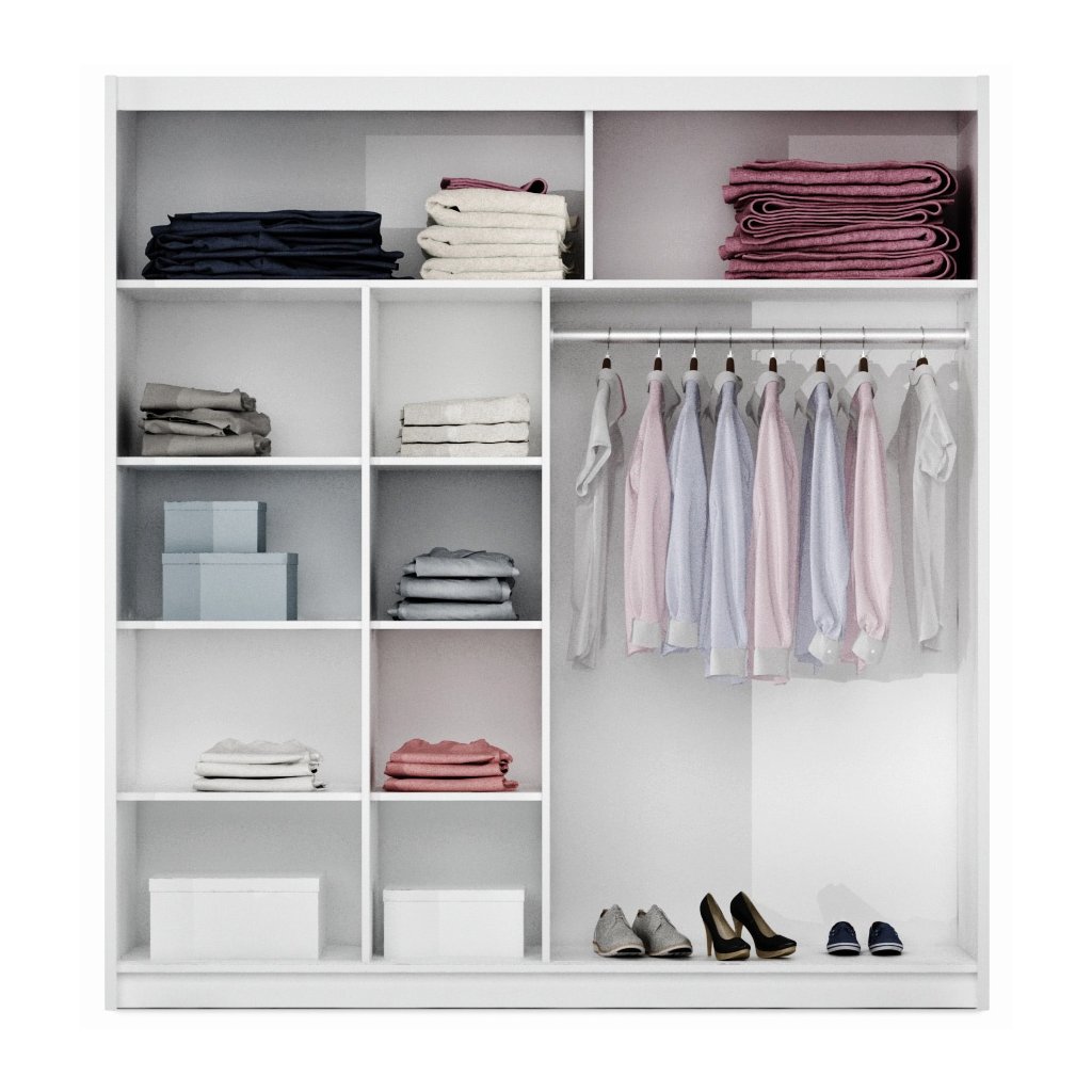 A LISSZÁNI ruhásszekrényben van Alumínium sínek a könnyebb és kényelmesebb mindennapi használatért. Az üveg a szekrényajtókra van ragasztva. A fogantyúk tartós műanyagból készültek. Az ajtók oldalán védőcsíkok találhatók tömítéssel (szálcsiszolt). Tisztítása egyszerű, csak nedves ruhával kell áttörölni.