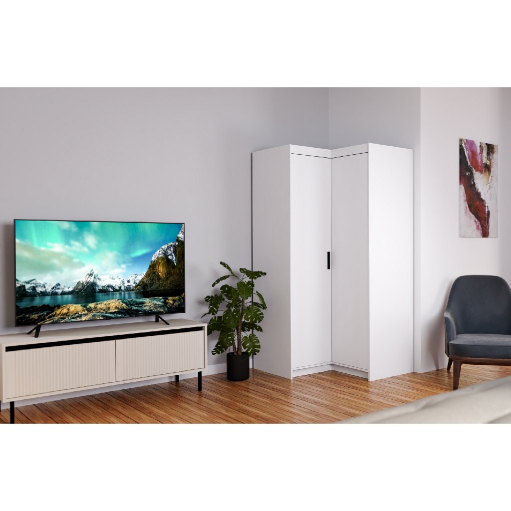 A 2D sarokgardrób kiváló minőségű, 15 mm-es laminált anyagból készült, amely tartósságot, hosszú élettartamot és az Ön elégedettségét garantálja. A praktikus kialakítás, az időtlen fehér felület, a tökéletes dizájn és a modern megjelenés a bútorok jellemző jellemzői. A gyönyörű fekete műanyag fogantyúk egyedi megjelenést kölcsönöznek a gardróbnak. Tehát ne habozzon tovább, és adjon hálószobájának egy kis egyediséget az ELLEN 2D gardrób formájában. Ha érdekli, az ELLEN 2D gardróbhoz bővítményt is rendelhet.