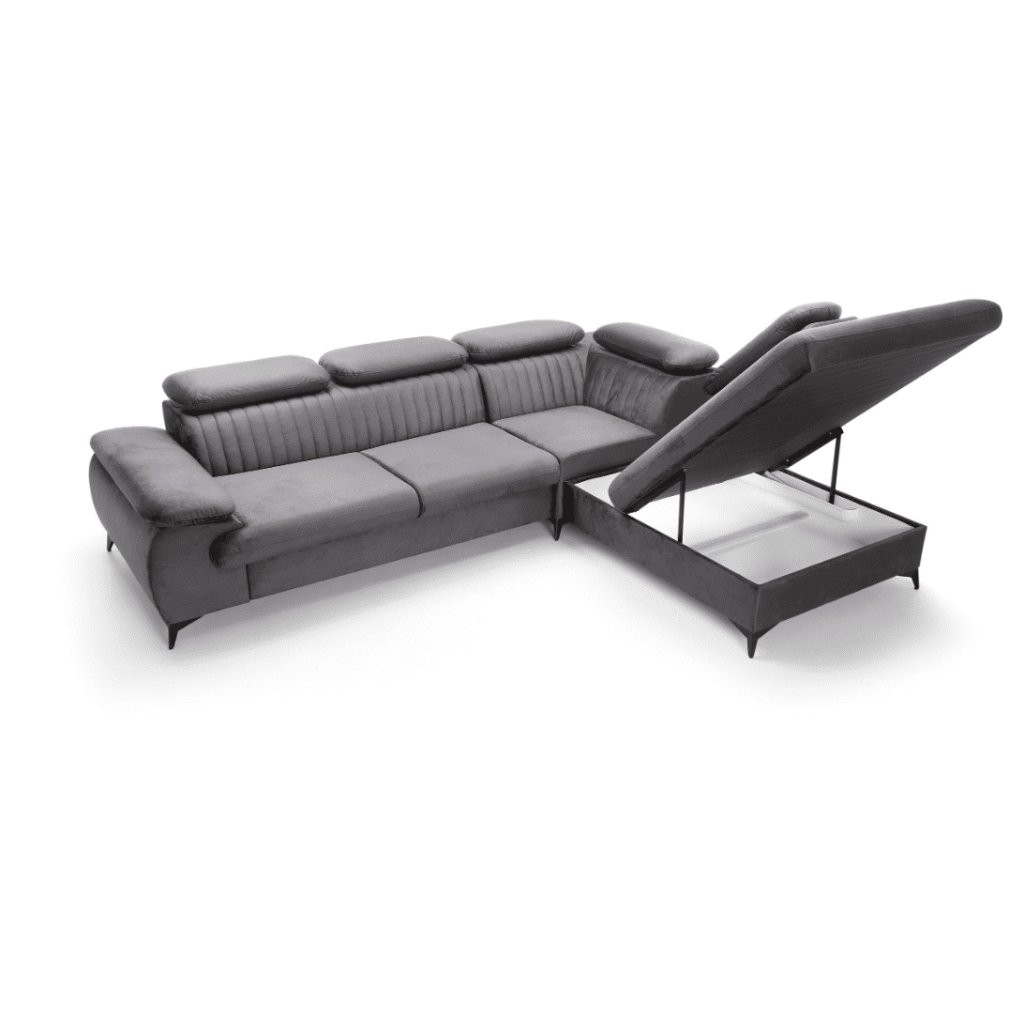 Olyan kanapét keres, amely ötvözi a kényelmet és a stílusos dizájnt ? A háttámla érdekes varrása különleges bájt kölcsönöz a BELT L kanapénak, és kivételes bútordarabpá teszi, amely különösen alkalmas modern enteriőrökbe. Ez az egyedi elem nemcsak esztétikai kiegészítő, hanem egy jellegzetes dizájnelem is, amely minden látogató figyelmét felkelti. A szürke BELT L kanapégarnitúra összecsukható és bőséges tárolóhelyet kínál. A kanapégarnitúra bal és jobb oldali változatban is kapható, állítható fejtámlákkal. A kanapégarnitúra különböző árkategóriákból származó különféle anyagokból készülhet , az ár a legalacsonyabb árkategóriára érvényes. A végső árat e-mailben küldjük el Önnek.