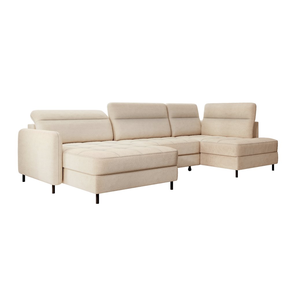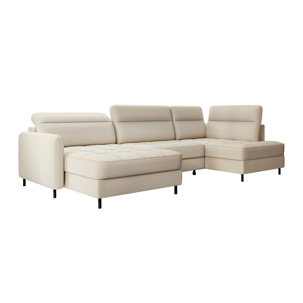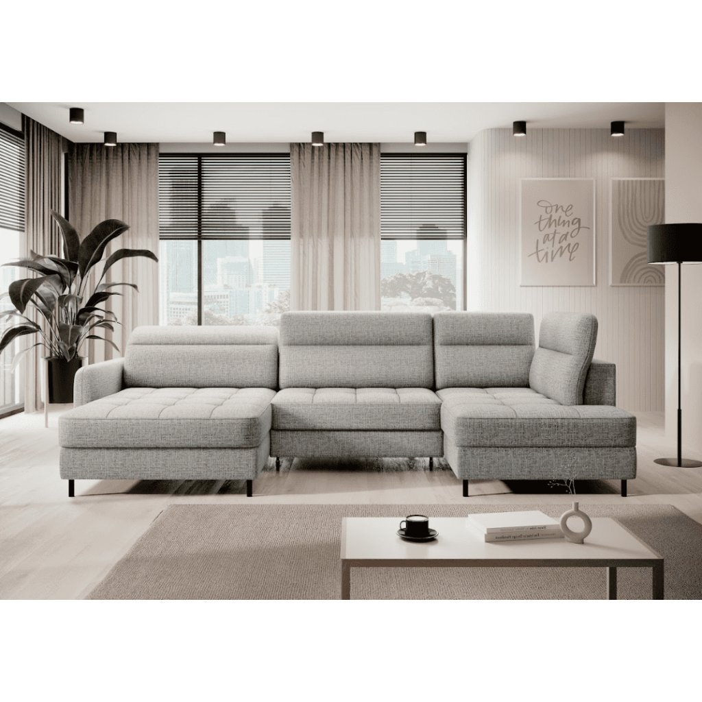 A BERRTO kanapégarnitúra gyorsan és hatékonyan alakíthatja át otthonát a tökéletes hellyé a kikapcsolódáshoz és a családdal való időtöltéshez. Első pillantásra lenyűgöz minket elegáns, fekete, festett acél lábaival . A kárpitozott varrások és a kiváló minőségű kárpitanyag kombinációjával a sarokkanapé-garnitúra rendkívül vonzónak és stílusosnak tűnik. Az ülőgarnitúra összecsukható és tárolóhelyet biztosít.