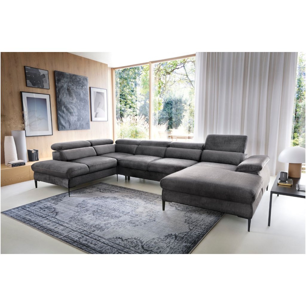 A BLUES U dizájner kanapégarnitúra kellemes tapintású szövettel van kárpitozva. Vogue anyag, töltet anyaga PUR hab és a rugók falisták. A magasabb fém lábak stabilitást biztosítanak. Az ülés használat előtt tisztítható. impregnálva , minden szennyeződés könnyen eltávolítható univerzális tisztítószer .