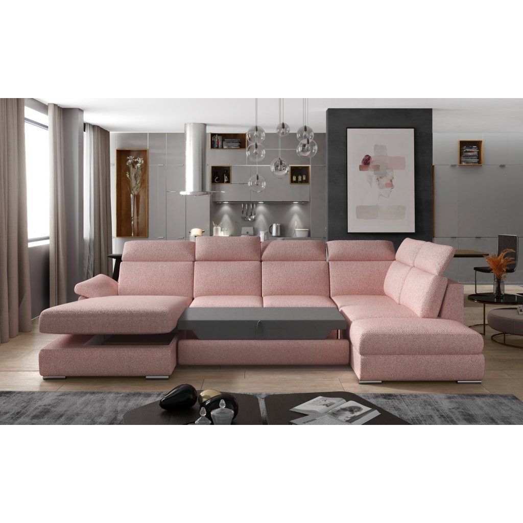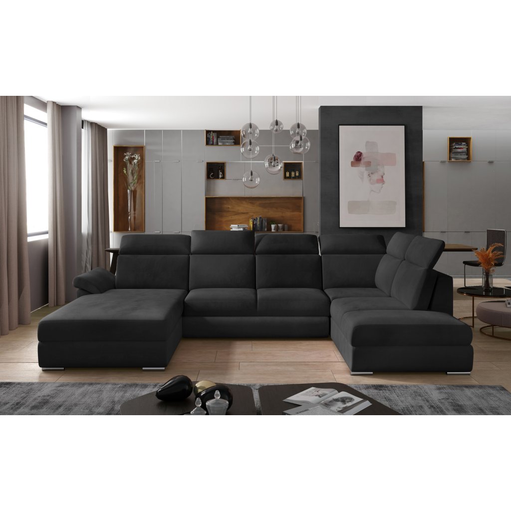 A tágas és kényelmes, U alakú sarokkanapé, az EVANELL, feltűnő kiegészítője a modern nappalinak. Az EVANELL egy kényelmes , U alakú kanapé . Könnyen kihajtható. Kibontás után egy tágas, 125 x 265 cm-es hálórészt kap , amely még a legigényesebb felhasználók igényeit is kielégíti. Az EVANELL kanapé kiváló minőségű... rugók és rugalmas hab. A kanapégarnitúra funkcionalitását a kellően nagy tárolóhely is fokozza.
