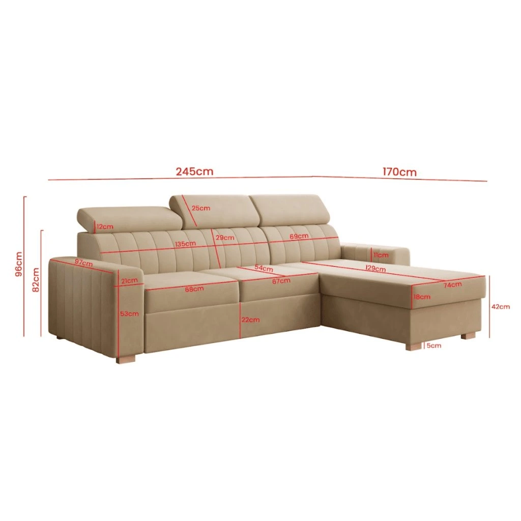 Tágas, kényelmes és egyben praktikus kanapét keresel a nappalidba? Ez a LAOS L kanapéágy balos változatban ideális választás családok és igényes vásárlók számára, akik a stílust, a funkcionalitást és a mindennapi kényelmet szeretnék ötvözni. Formájának köszönhetően elegendő helyet biztosít több ember pihenésére, míg a modern dizájn és a kiváló minőségű kárpitozás elegáns és időtlen megjelenést kölcsönöz nappalidnak. A kanapé praktikus billenthető mechanizmussal van felszerelve, amelynek köszönhetően könnyen kényelmes ággyá alakíthatod a vendégek számára. A nagy hálórész egész éjszakai kényelmet biztosít. A mindkét oldalon található integrált tárolóhely ideális olyan dolgok tárolására, amelyeket mindig kéznél szeretnél tartani, ugyanakkor rendben szeretnéd tartani a nappalit. Emellett ideális arányt kínál az ár, a minőség és a funkcionalitás között.