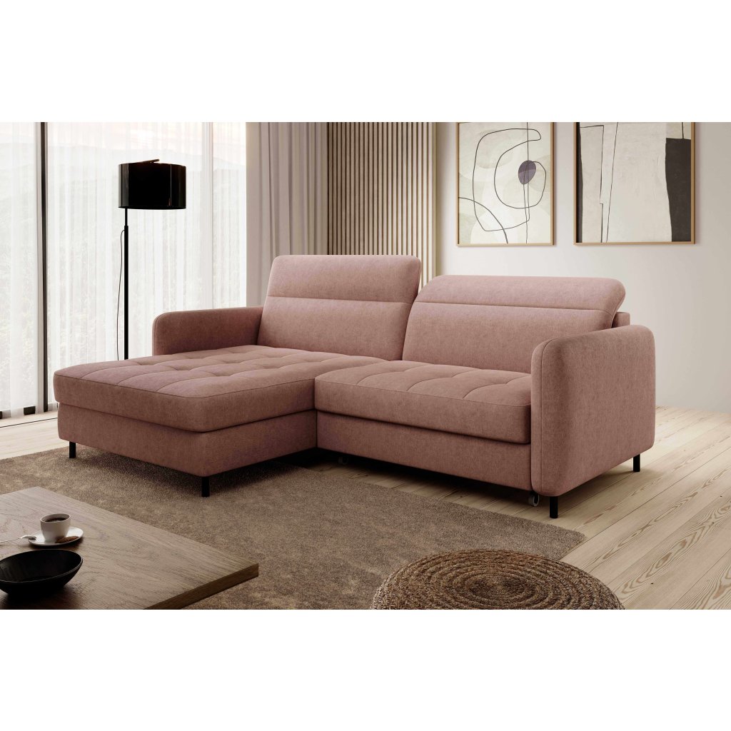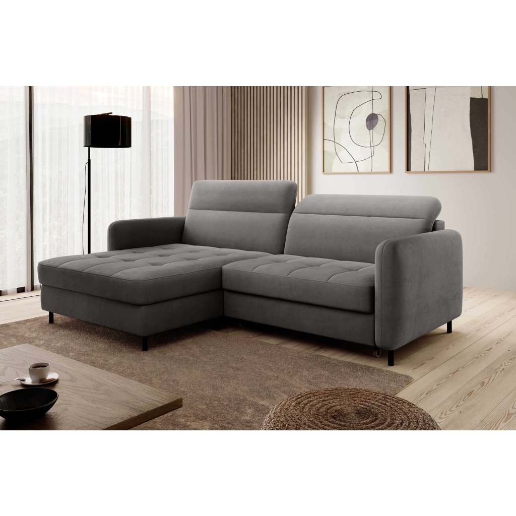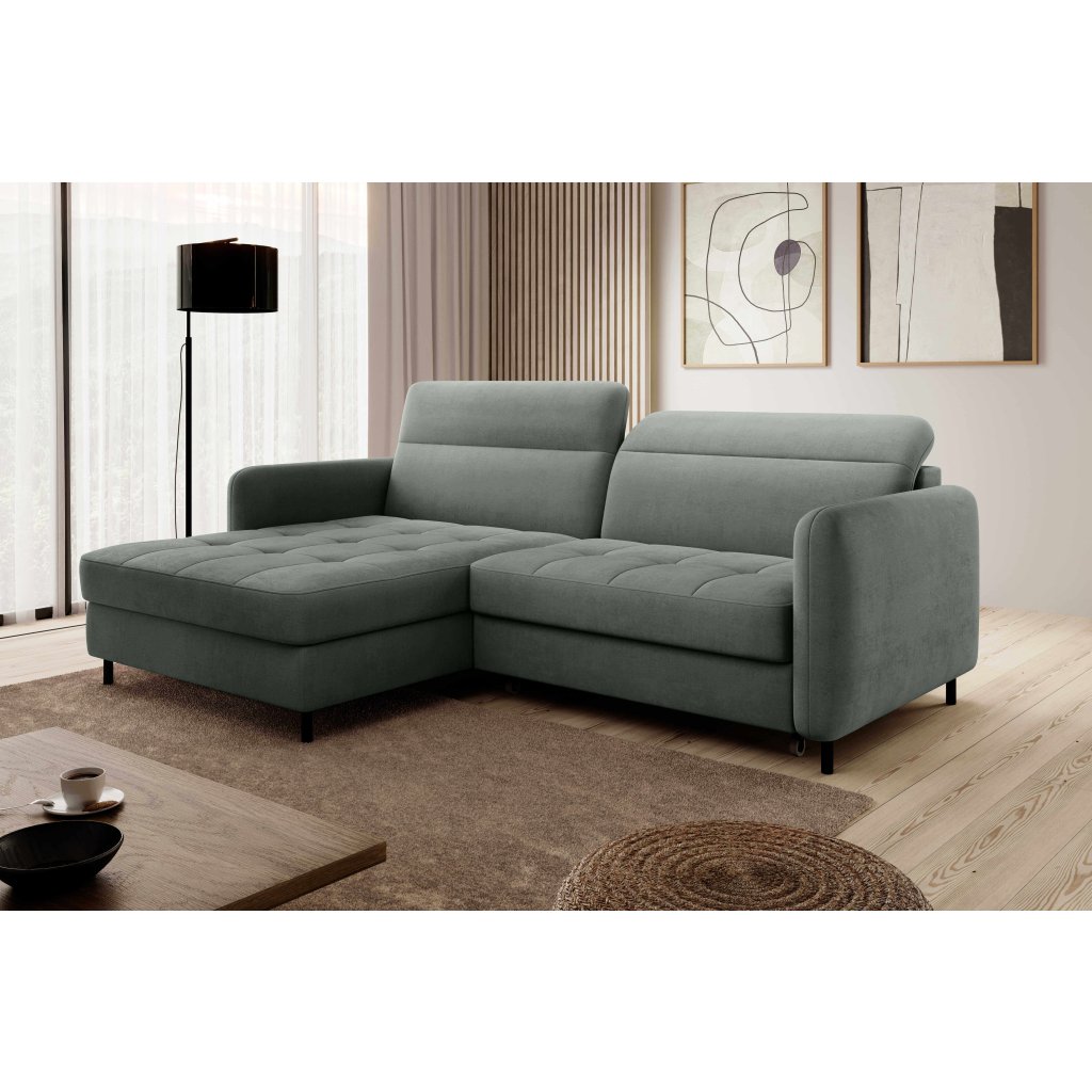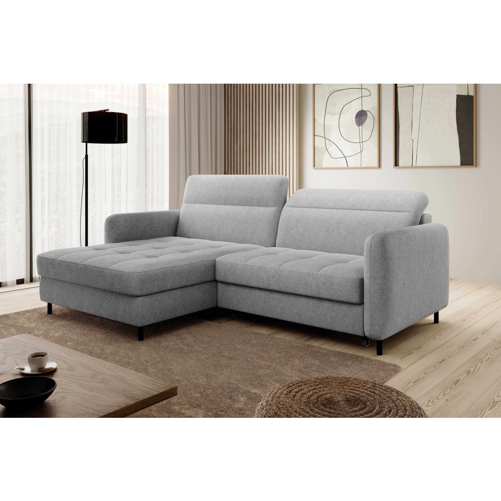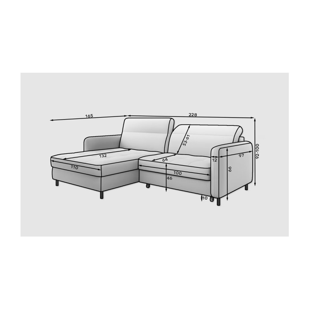 A GOMSI egy multifunkcionális, elegáns és tágas sarokkanapé modern klasszikus stílusban. A GOMSI kanapégarnitúra gyorsan és hatékonyan alakíthatja át otthonát a tökéletes hellyé a kikapcsolódáshoz és a családdal való időtöltéshez. A kárpitozott varrásoknak és a kiváló minőségű kárpitanyagnak köszönhetően a sarokkanapé garnitúra rendkívül vonzó és stílusos megjelenést kölcsönöz. Az összecsukható funkciónak köszönhetően a kanapégarnitúra kihajtható, és 200 x 128 cm-es alvófelületet kínál. Ezenkívül praktikus ágyneműtartóval is rendelkezik. A kanapéhoz puff is rendelhető.