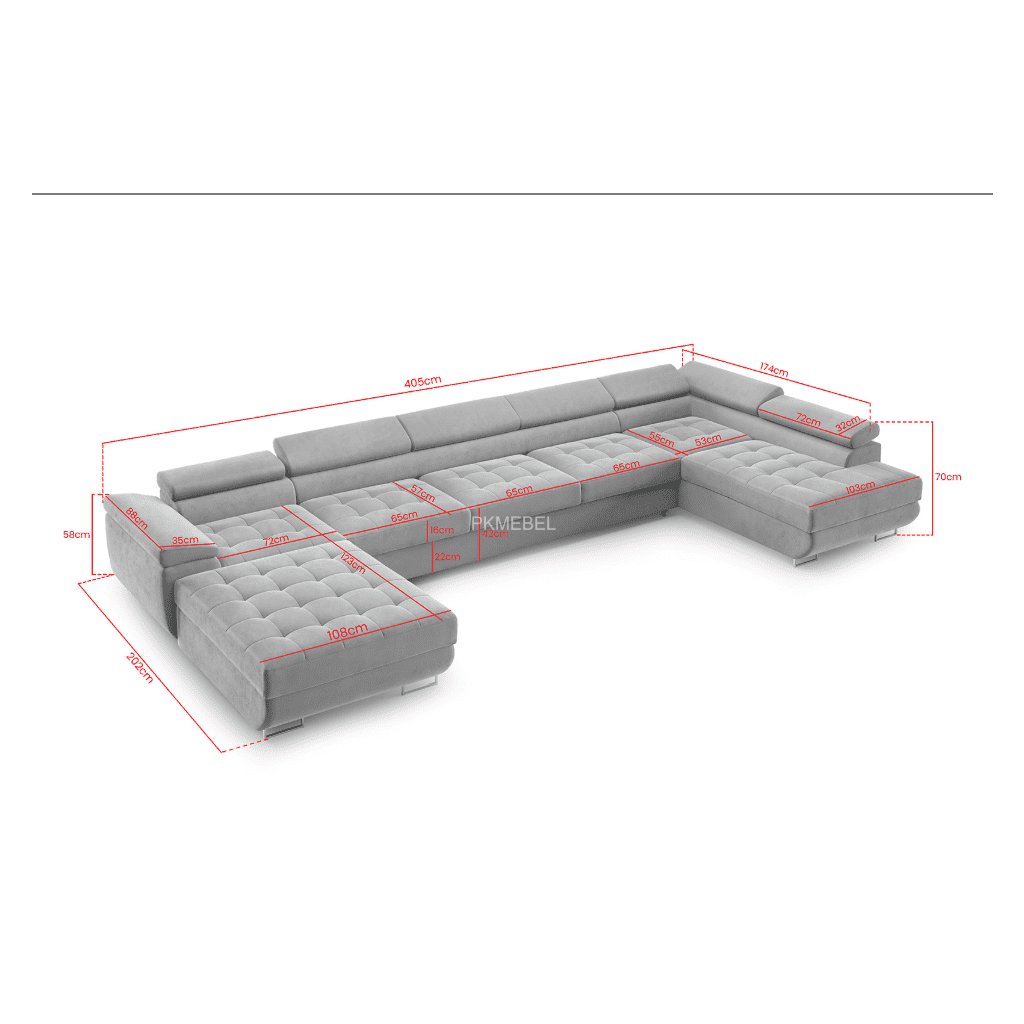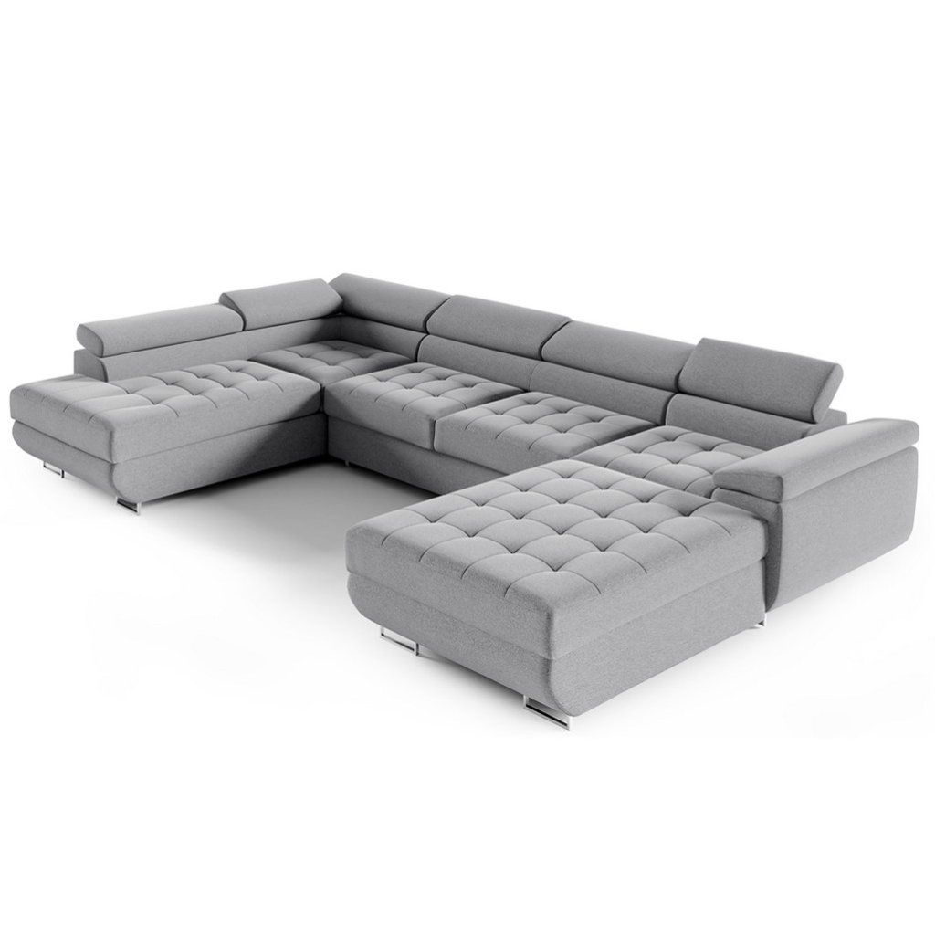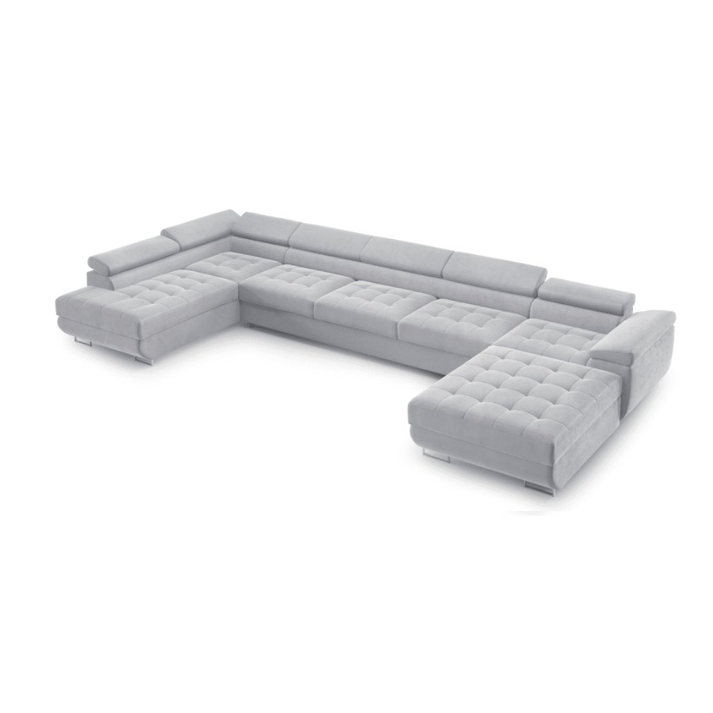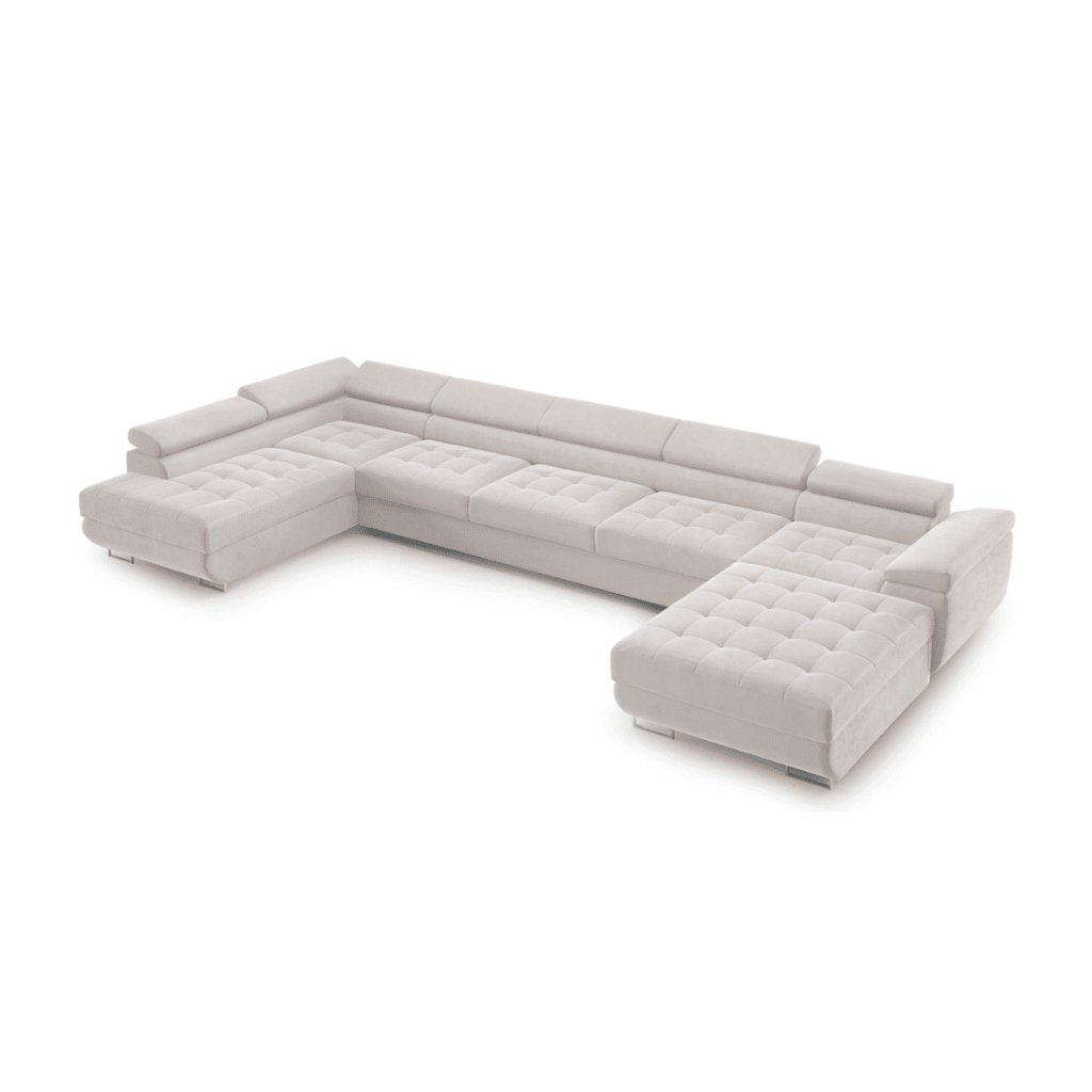 Fedezze fel a kényelem és az elegancia tökéletes kombinációját a luxus U-alakú BENJAMIN XL sarokkanapéval . Ez a modern kanapé tágas ülőhelyet kínál, ideális családi összejövetelekhez, munka utáni pihenéshez vagy filmnézéshez. Letisztult szettai és időtlen dizájnja bármilyen enteriőrbe illik - a minimalistatól a luxusig. A kanapé kiváló minőségű anyagokból készült, amelyek könnyen karbantarthatók és sokáig megőrzik eredeti megjelenésüket. A puha, steppelt ülések garantálják a kényelmet még hosszabb ülés során is, míg az állítható fejtámlák és karfák maximális testreszabhatóságot biztosítanak. Nagy előnye az akár két tárolórekesz és a praktikus alvóhely. A BENJAMIN U XL kanapé nappalija domináns elemévé válik, és egy olyan hellyé, ahol minden nap örömmel találkozhat.