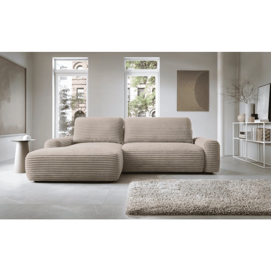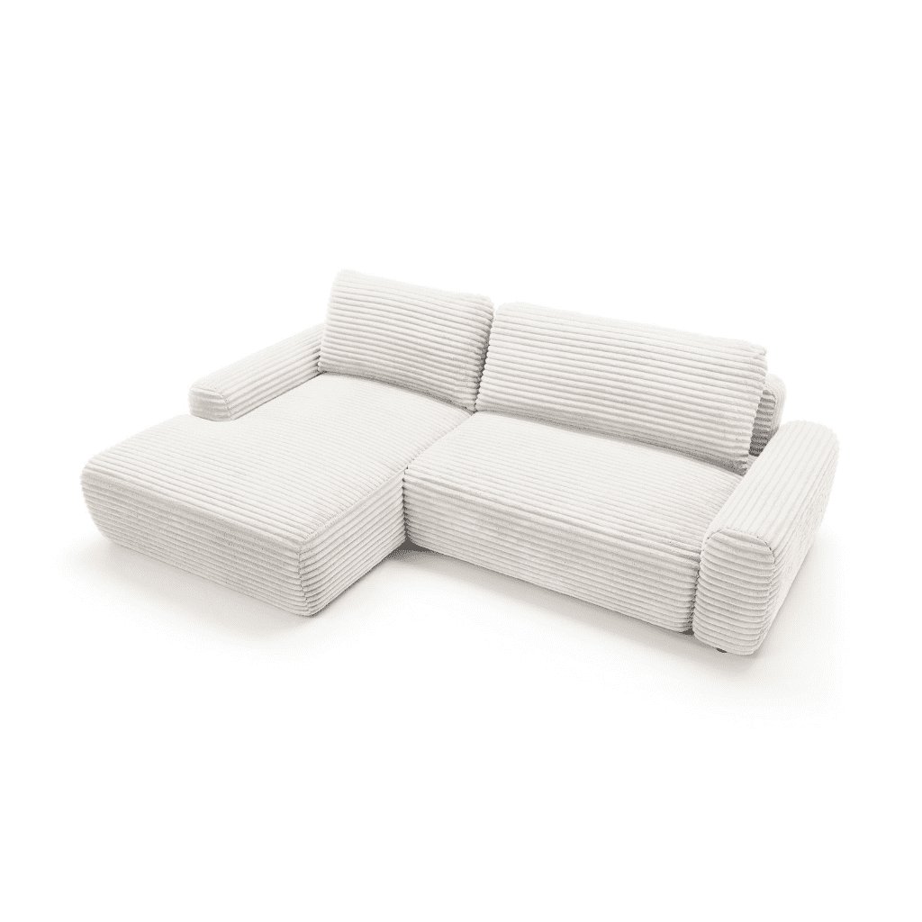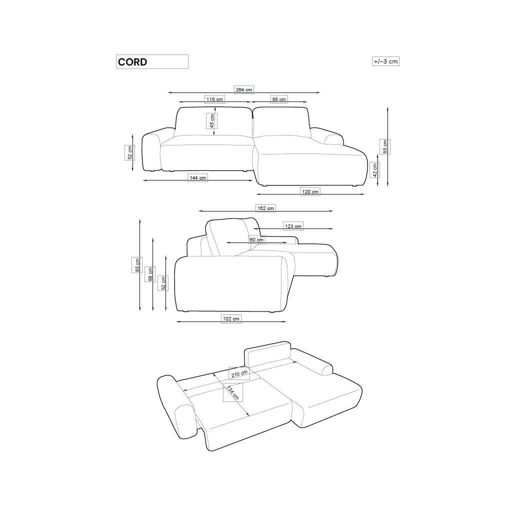 A prémium Ambience szövettel ellátott CORD sarokkanapé-szett a modern dizájn és a praktikus funkciók tökéletes kombinációja, így ideális választás bármilyen nappaliba. Időtlen megjelenése és finom bordázott mintája azonnal magára vonzza a tekintetet, ugyanakkor otthonosnak és elegánsnak is tűnik. Az univerzális színvilágnak köszönhetően a kanapé könnyen kombinálható különféle belső stílusokkal – a minimalista stílustól a skandináv stíluson át a luxusdíszítésű terekig. A kanapé egyik fő előnye az összecsukható funkció , amely lehetővé teszi, hogy a kényelmes ülőhelyet tágas ággyá alakítsa. További előny a tárolóhely , amely az ülőlap alatt rejtőzik. A kanapé nemcsak jól néz ki, hanem az egész család számára mindennapi használatra is alkalmas .