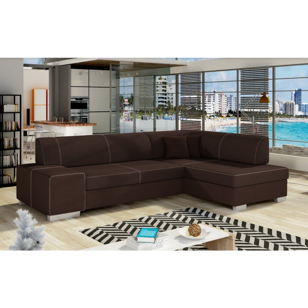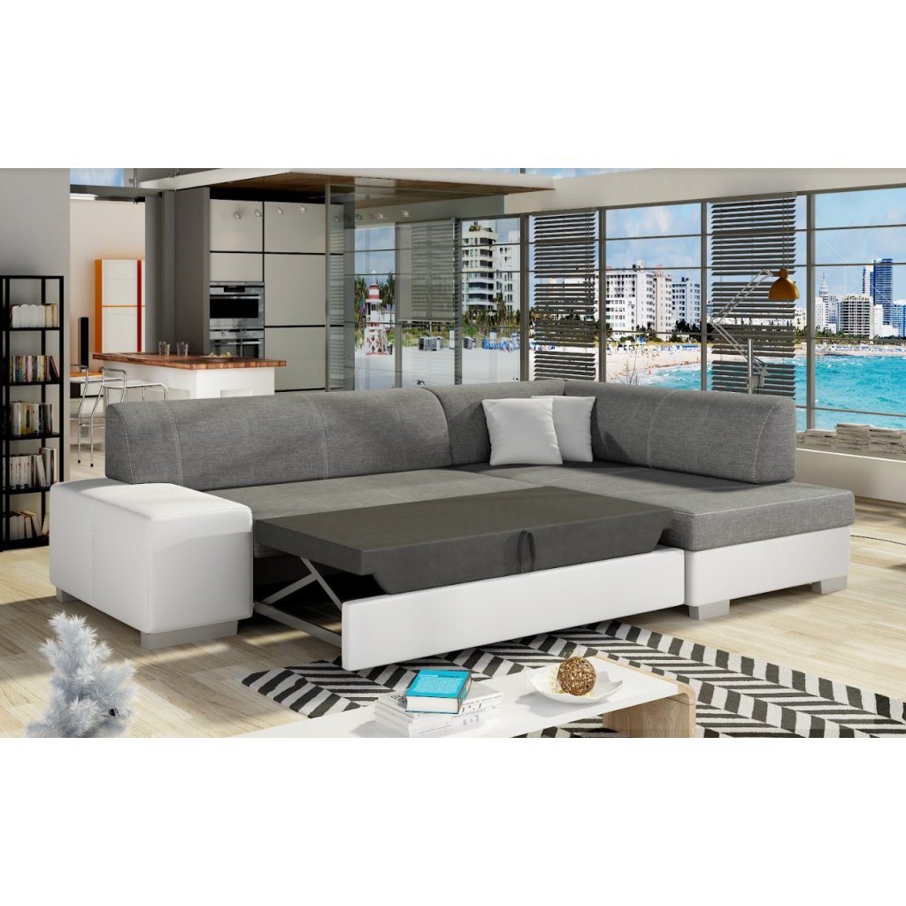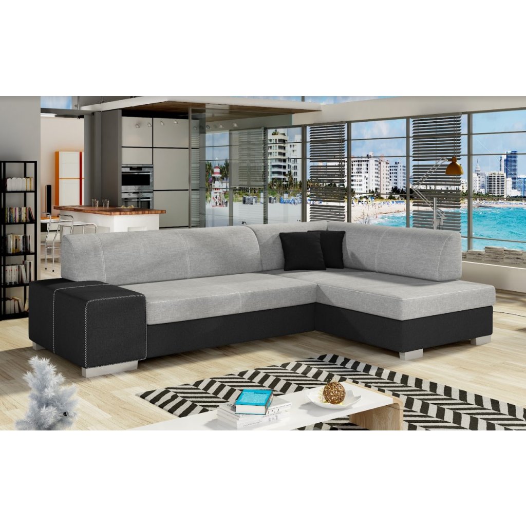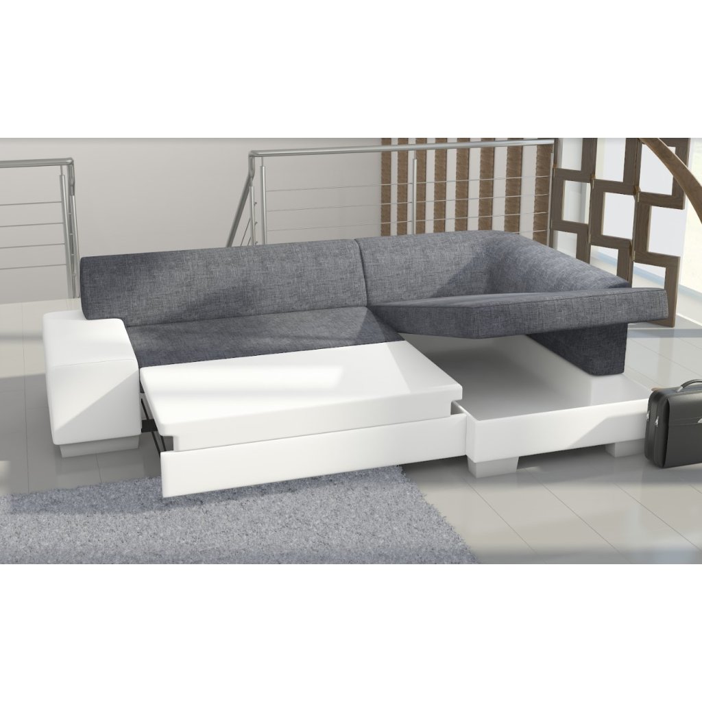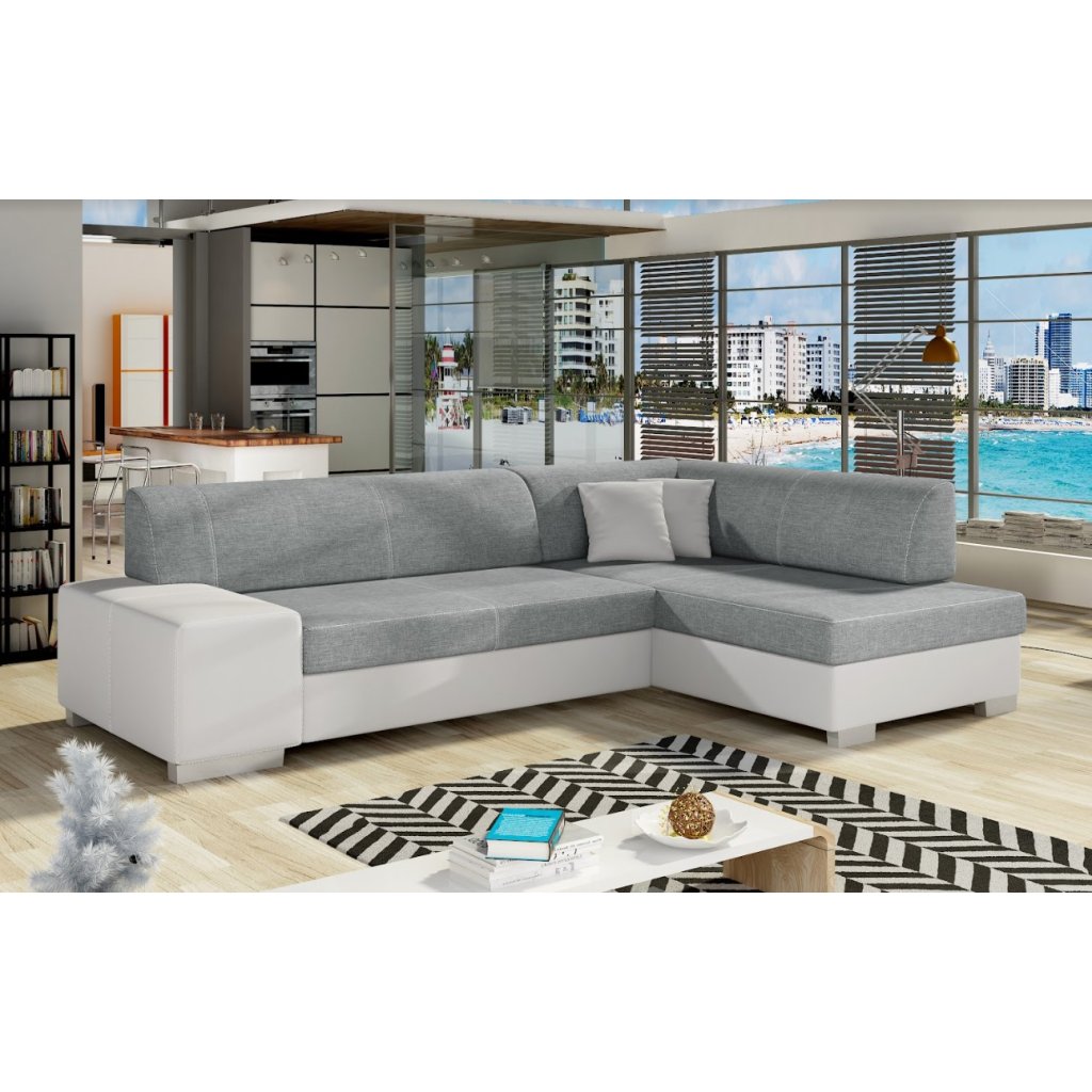 Modern összecsukható sarokkanapé szett FABIO tárolóhellyel , amely biztosan megfelelő reprezentatív bútordarabja lesz nappalijának. A FABIO sarokkanapé szett két szín kombinációjában készült, a megfelelő dizájnban. A kanapé szett magja faliszt rugókból és kiváló minőségű habszivacsból készült. A kibontás az automatikus DELFÍN rendszer segítségével történik, amelynek köszönhetően 125 x 195 cm-es alvóhelyet kap. Értékelni fogja a tárolóhelyet.