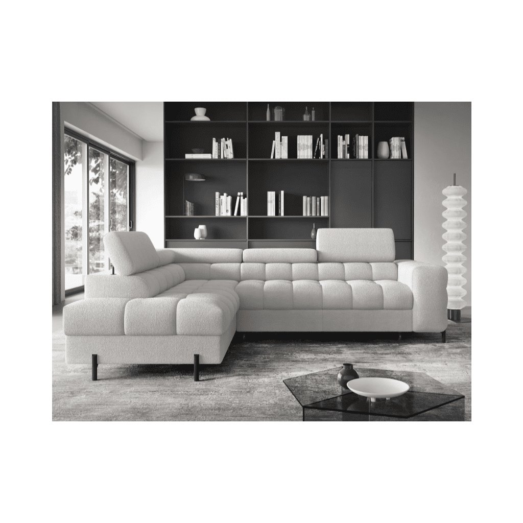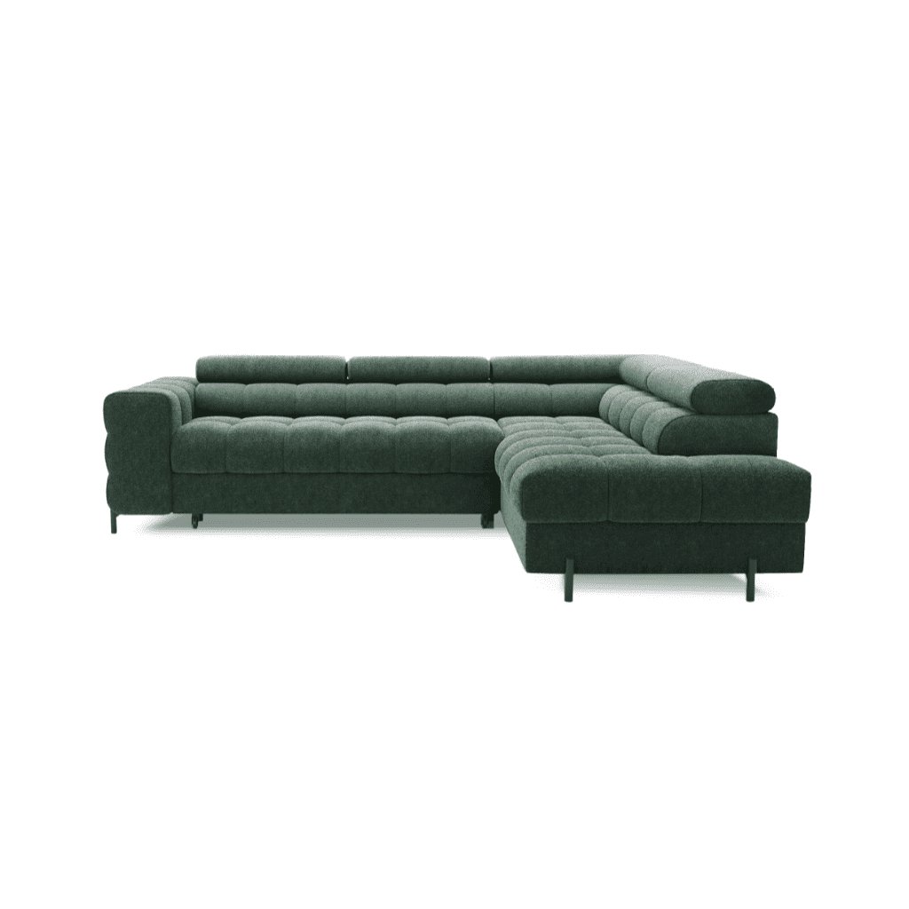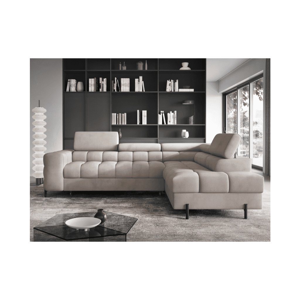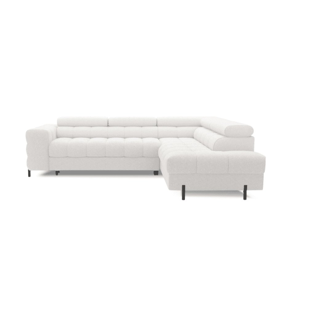 A FERUCCE sarokkanapé ideális azok számára, akik szeretnék kihasználni a helyet, elegendő tárolóhellyel rendelkezni, ugyanakkor nem akarnak kompromisszumot kötni a stílus és a stílus terén. Ez a kanapétípus nemcsak helyet takarít meg, hanem számos olyan funkcióval is rendelkezik , amelyeket a mindennapi használat során értékelni fog. Fő előnyei közé tartozik a tárolóhely , az ággyá való összecsukhatóság és a stílusos varrás , amely eleganciát kölcsönöz az összképnek. A kanapé lábai fémből készültek, ami tökéletes stabilitást garantál. A FERUCCE sarokkanapé különböző színekben készül, így mindenki választhat közülük.