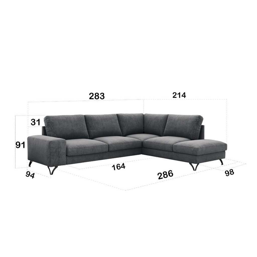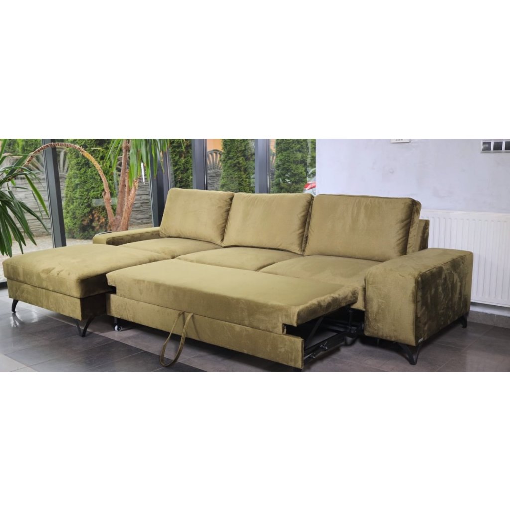 FLAVIO kanapégarnitúra | bal oldali, a tökéletességet és a modernitást ötvözi. A FLAVIO kanapégarnitúra tárolóhellyel és a delfin rendszer segítségével kibontási lehetőséggel rendelkezik, 120 x 223 cm-es alvófelülettel. Az ülőfelület rendkívül rugalmas habból és tartós hullámrugókból készült , a hab antiallergén tulajdonságokkal rendelkezik és hosszabb élettartamú. A kényelmes, többkamrás párnák poliuretán szilikon betéttel rendelkeznek, így rendkívül tartósak. A bal oldali változat L3F+L2F+R4 modulokból áll.