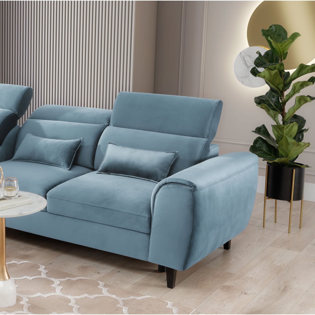 Sarokkanapé szett FOBLE A tökéletességet és a modernitást ötvözi. FOBLE kanapé szett A térben is beépítheted, ahogy van kárpitozott hátulról is. FOBLE az összecsukható kanapégarnitúra , amely bőséges tárolóhelyet kínál. A kanapégarnitúra gyártási helye: balra szintén jobbra oldalt állítható fejtámlákkal. Kicsomagolás A könnyű kibontást a DL automata szerkezet biztosítja. A kanapégarnitúra különféle szövetekkel kapható, három párnával , finom varrással és fekete falábakkal egészül ki. A lefelé szűkülő lábak kellő stabilitást és puha felületet biztosítanak a kanapégarnitúrának, amely kellemes kényelmet biztosít pihenés közben.