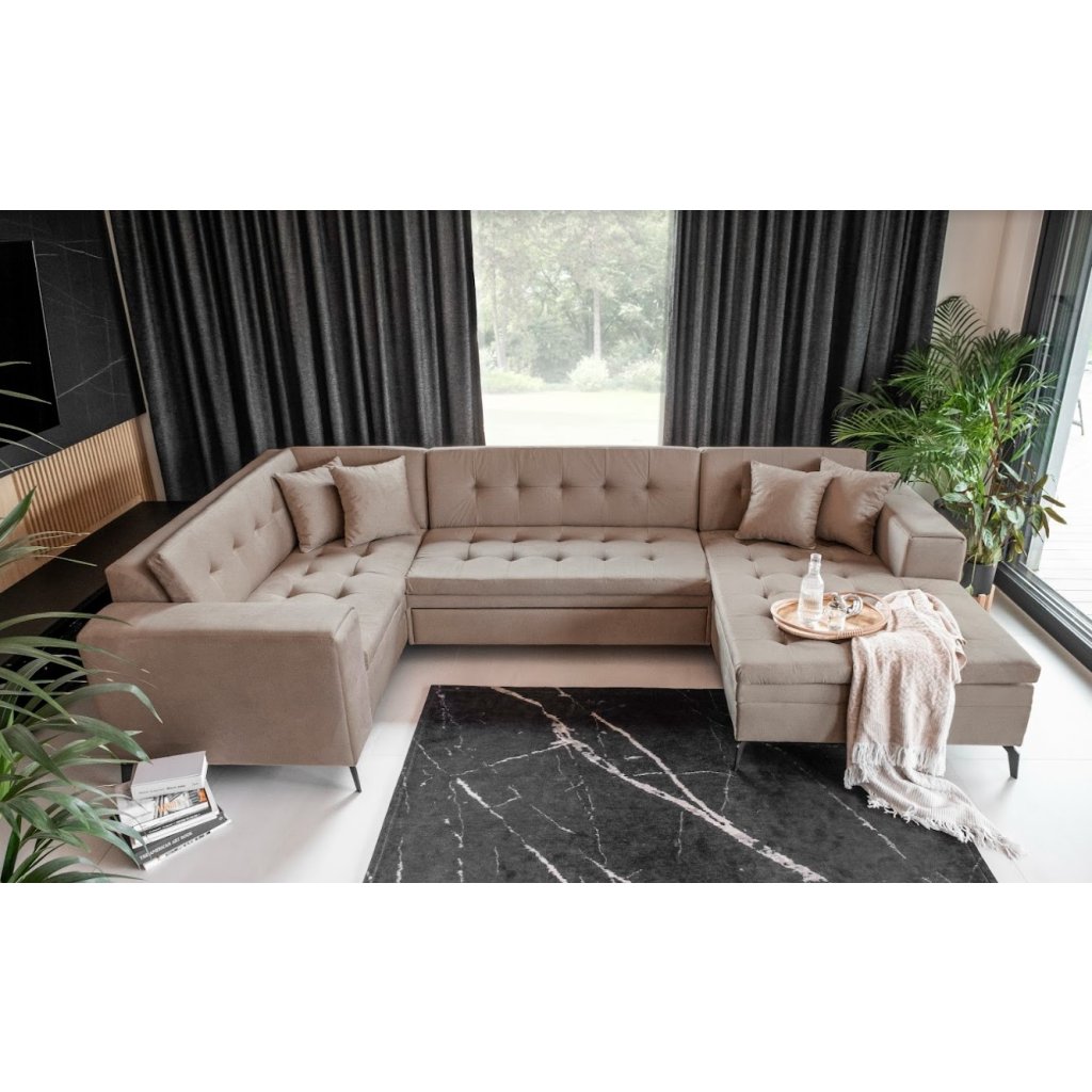 Varázsoljon vonzó térré nappaliját a MONTEZ U-alakú dizájner sarokkanapé megfelelő változatával . A kárpitozott háttámlának köszönhetően beltérben is használható. Értékelni fogja a nagy tárolóhelyet és az összecsukható alvási funkcióval ellátott felszereltséget, amely a nagyon intuitív delfin rendszeren alapul - amelynek köszönhetően könnyen kialakíthat akár 120 x 275 cm-es alvóhelyet . Varázsolj harmonikus és összehangolt egésszé nappalidat az eredeti MONTEZ kanapéval.