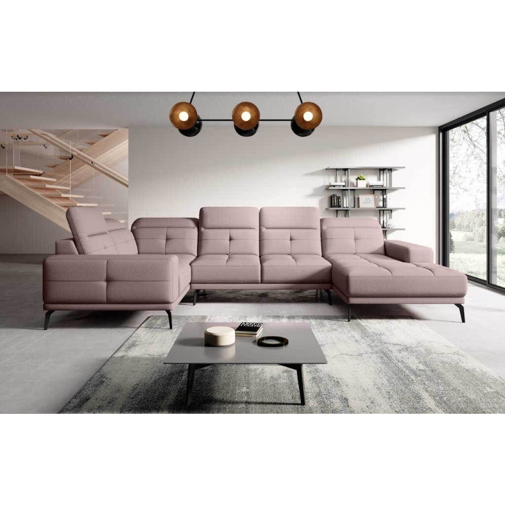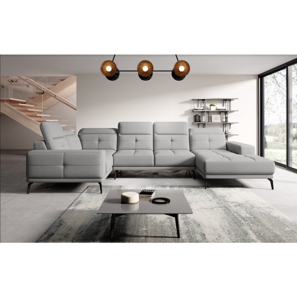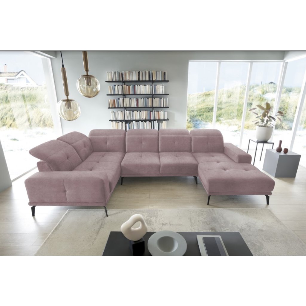Varázsoljon vonzó teret nappalijából a NEVIRO U-alakú dizájner kanapéval . A magas fekete lábaknak köszönhetően a kanapé szerkezete könnyűnek tűnik, mégis stabilitását nem veszíti el. A kanapé rendkívüli dizájnját a teljes ülőfelületen található díszes varrás adja, a fejtámla állíthatósága pedig növeli a használat kényelmét . A kárpitozott háttámlának köszönhetően a térbe is illik. Tegye nappaliját harmonikussá és összehangolt egésszé az eredeti NEVIRO kanapé bal oldali változatának köszönhetően.