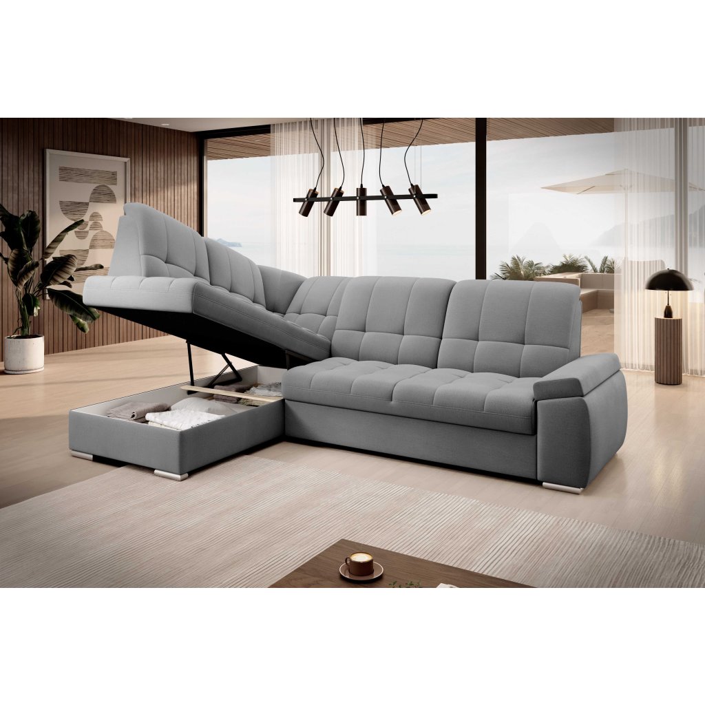 Varázsolja vonzóvá nappaliját a SADO dizájner sarokkanapé bal oldali változatával . A rendkívüli dizájn szemet gyönyörködtető varrásokkal és érdekes karfaformálással ruházza fel a kanapét, a kárpitozott háttámlának köszönhetően pedig a térhez is illik. Értékelni fogja az összecsukható alvási funkcióval ellátott felszereltséget, amely a leengedő mechanizmuson alapul - ennek köszönhetően könnyen kialakíthat akár 130 x 207 cm-es alvóhelyet . Varázsoljon harmonikus és összehangolt egésszé nappaliját az eredeti SADO kanapégarnitúrával .