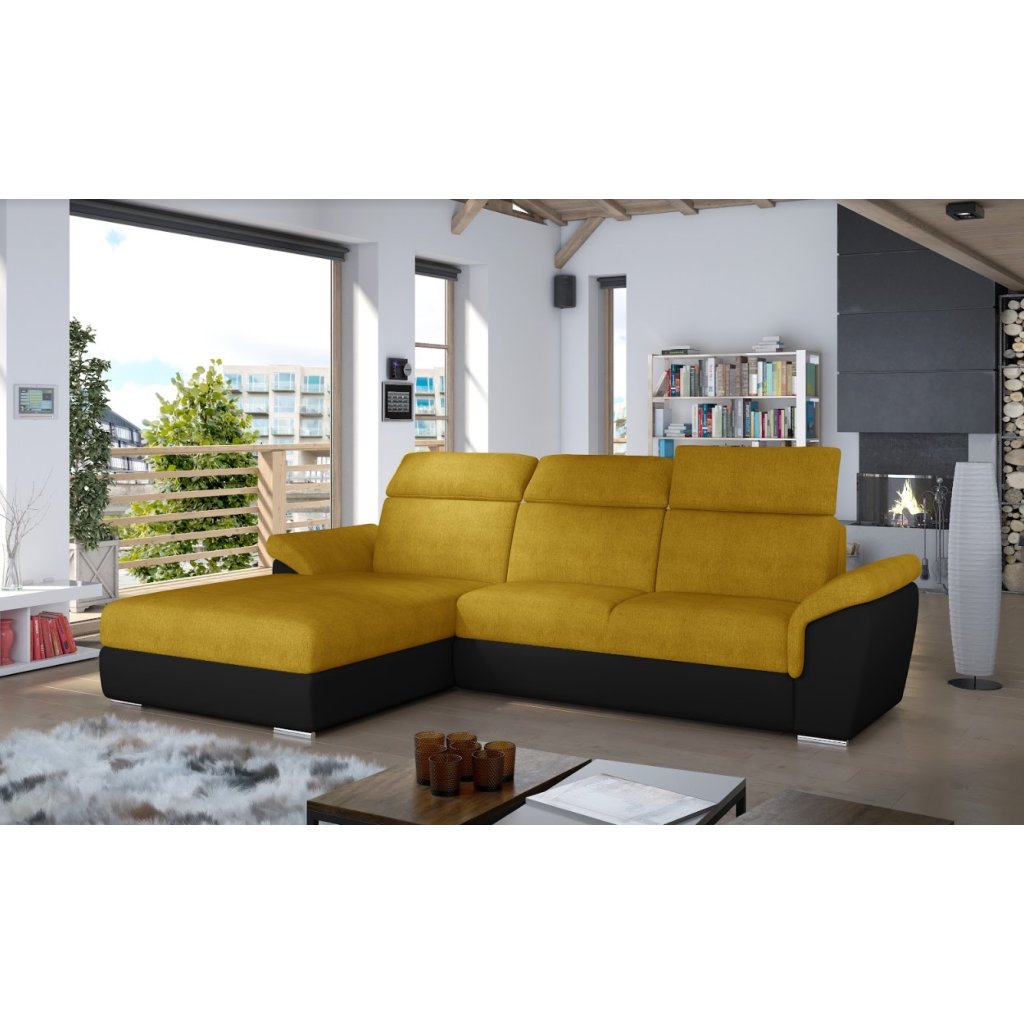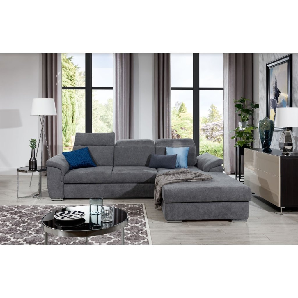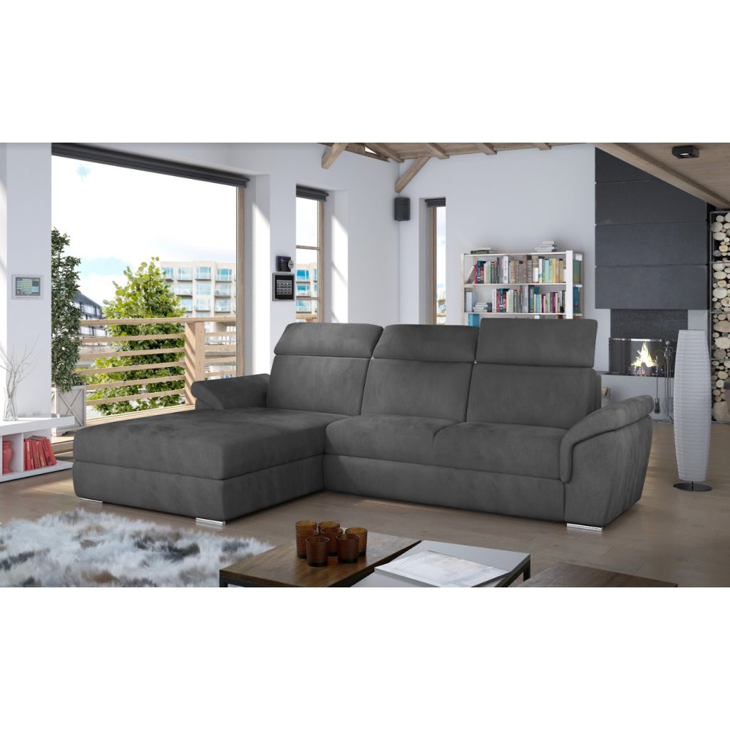 Varázsolja vonzóvá nappaliját a TREVISCO dizájner sarokkanapé-garnitúrával, bal oldali változatban . A kárpitozott háttámlának köszönhetően a nappaliban is használható. Értékelni fogja a nagy tárolóhelyet és az összecsukható alvási funkcióval ellátott felszereltséget, amely a nagyon intuitív delfin rendszeren alapul - amelynek köszönhetően könnyen kialakíthat akár 127 x 210 cm-es alvóhelyet . Varázsolj harmonikus és összehangolt egésszé nappalidat az eredeti TREVISCO kanapéval .