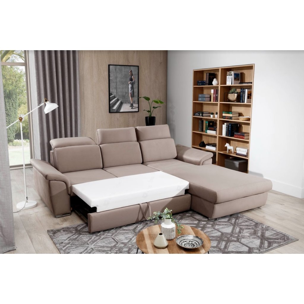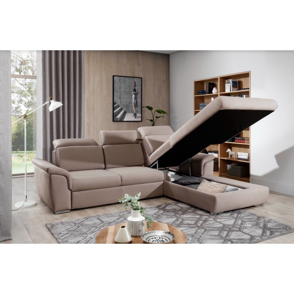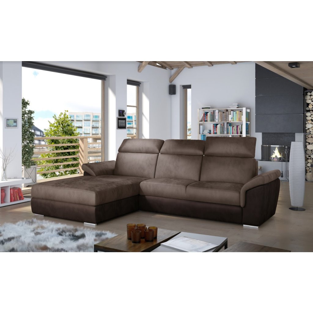 Varázsolja vonzóvá nappaliját a TREVISCO dizájner sarokkanapé-garnitúrával, bal oldali változatban . A kárpitozott háttámlának köszönhetően a nappaliban is használható. Értékelni fogja a nagy tárolóhelyet és az összecsukható alvási funkcióval ellátott felszereltséget, amely a nagyon intuitív delfin rendszeren alapul - amelynek köszönhetően könnyen kialakíthat akár 127 x 210 cm-es alvóhelyet . Varázsolj harmonikus és összehangolt egésszé nappalidat az eredeti TREVISCO kanapéval .