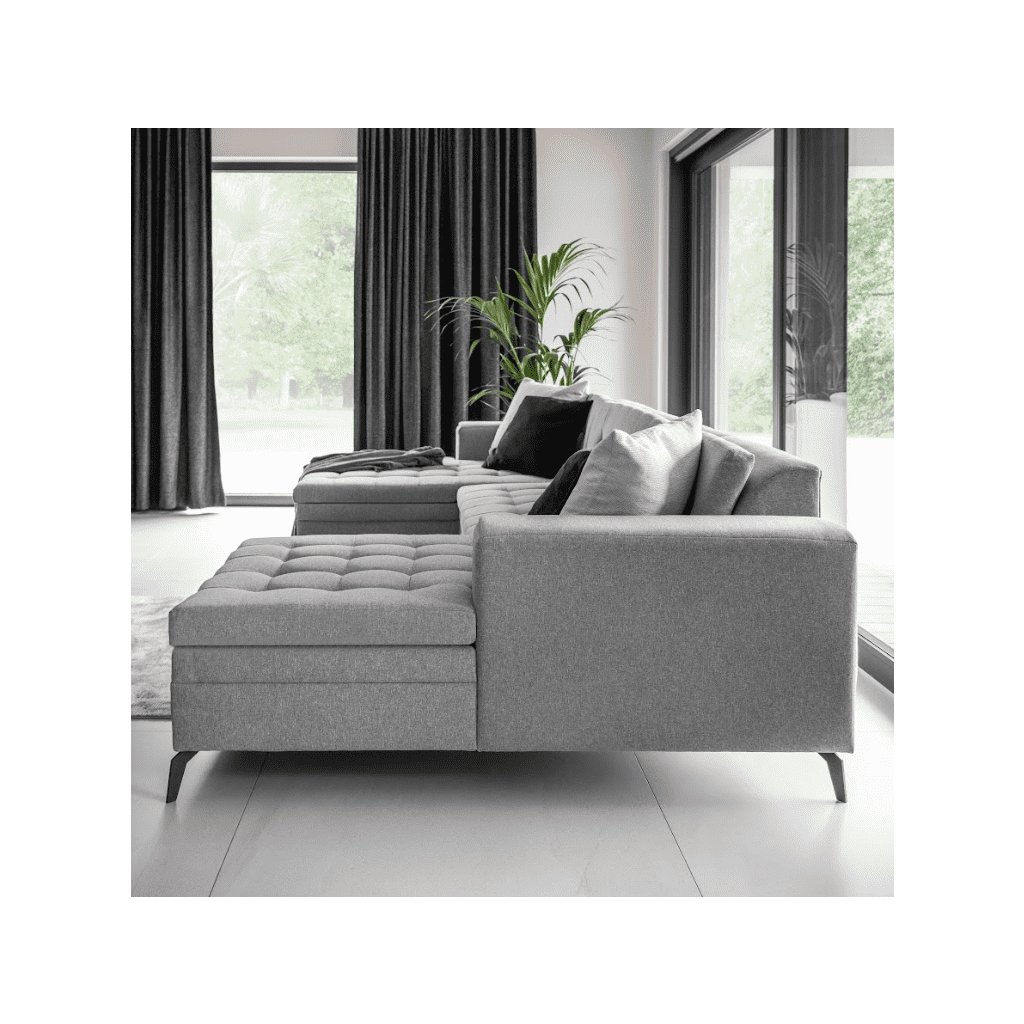 Az egyedi, U-alakú VERTIZO sarokkanapé nappal egy relaxfotel helyettesítésére szolgál, éjszaka pedig tágas, nagy alvórésszel rendelkező franciaággyá alakul. A megbízható delfin összecsukórendszer lehetővé teszi, hogy pillanatok alatt, felesleges erőfeszítés nélkül előkészítsük az ágyat. A gyönyörű és egyszerű forma lehetővé teszi, hogy gyorsan illeszkedjen bármilyen modern enteriőrbe. A Vertizo kanapéágyat stílusos, elegáns steppelések jellemzik, amelyek kifinomultságot kölcsönöznek a kanapénak, de egyben érdekes változata is. A VERTIZO időtlen dizájnnal és elképesztően puha ülőfelülettel rendelkezik, amelyet hullámrugó és T30 hab kombinációjával töltenek meg. A T25 habbal ellátott háttámla kivételes kényelemmel is elősegíti a pihenést. A Vertizo megjelenése érdekes a magas, díszes , fém lábakkal , amelyek egy csipetnyi eleganciát kölcsönöznek neki.