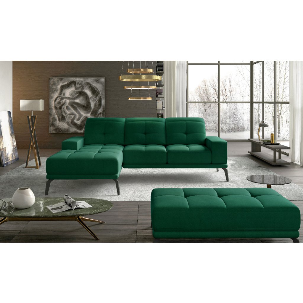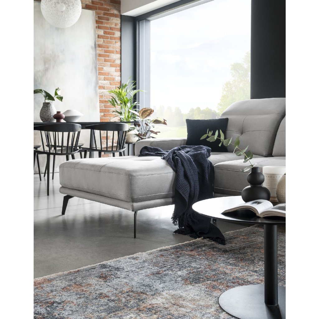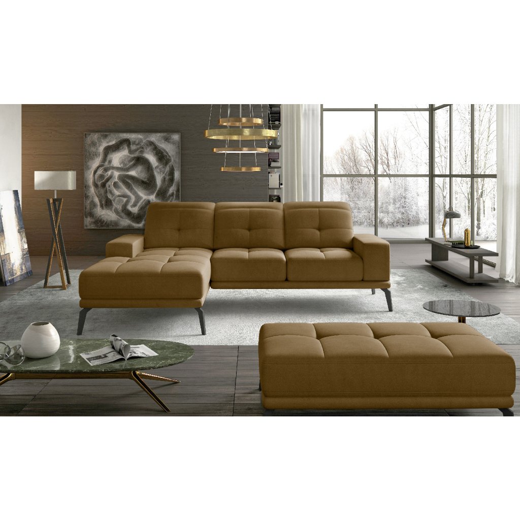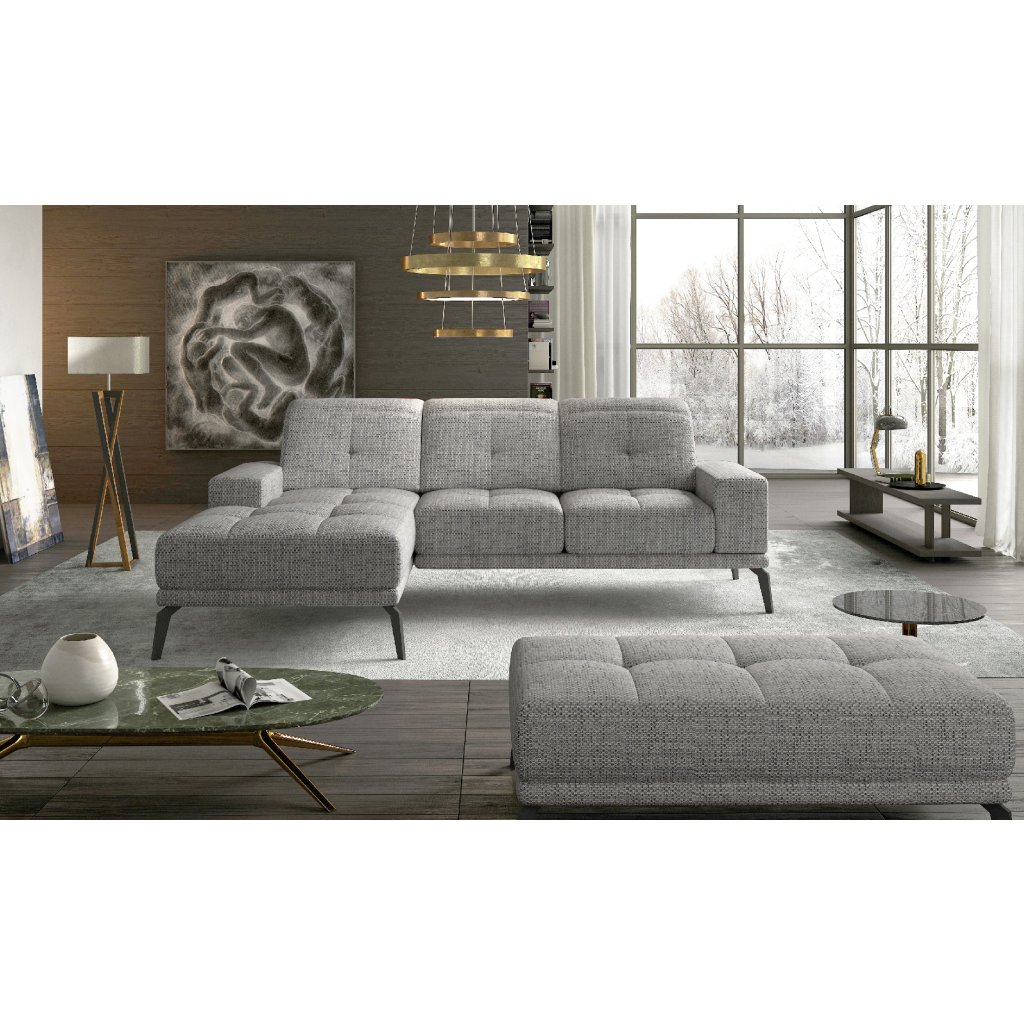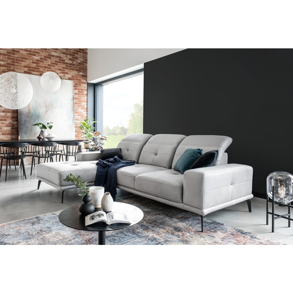 A modern TORRENSE sarokkanapé egy adag luxust visz a nappaliba. A magas, karcsú fém lábaknak köszönhetően a kanapé szerkezete könnyűnek tűnik, ugyanakkor nem veszít stabilitásából. A kanapé rendkívüli dizájnját az ülőfelület és a háttámla teljes felületén található díszes varrás adja. A kanapé számos innovatív megoldással rendelkezik: hosszú lábtartó, két széles karfa, állítható fejtámlák. Beltéri használatra is alkalmas, mivel hátulról is kárpitozott. Méreteinek és kialakításának köszönhetően mind a kisebb, mind a nagyobb terekben kiemelkedik.