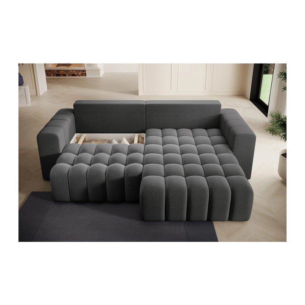 A lenyűgöző és ötletes BONETT sarokülőgarnitúra eredeti dizájnelemet varázsol a nappaliba. Az ötletes dizájn a ülőgarnitúra dekoratív varrást kölcsönöz az egész ülőfelületen. Az ülőgarnitúra egy 195 x 125 cm-es hálórésszel rendelkező kanapé, amely tárolóhelyet is biztosít. Beltéri használatra is alkalmas, hiszen hátul is kárpitozott. Méreteinek és kialakításának köszönhetően kicsi és nagyobb terekben is megállja a helyét.