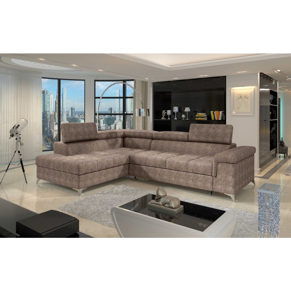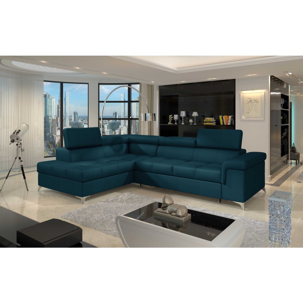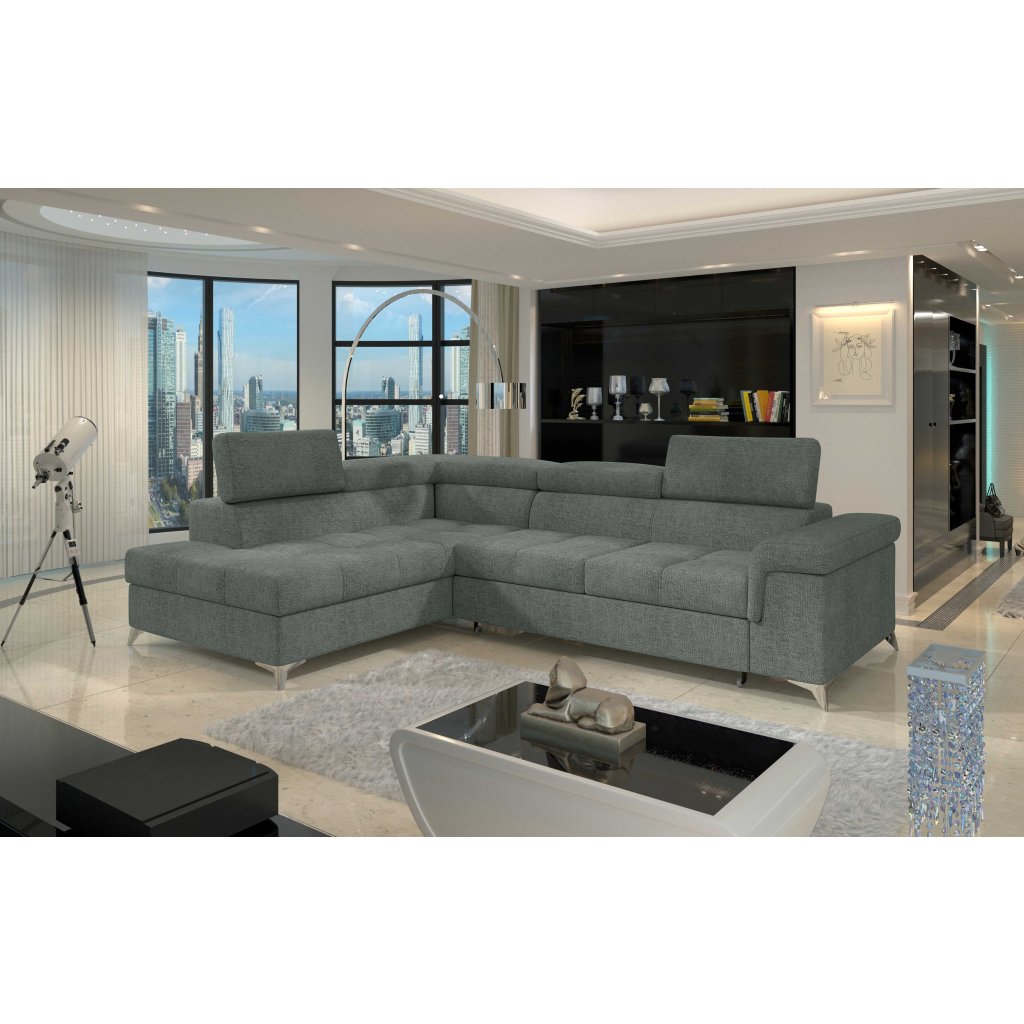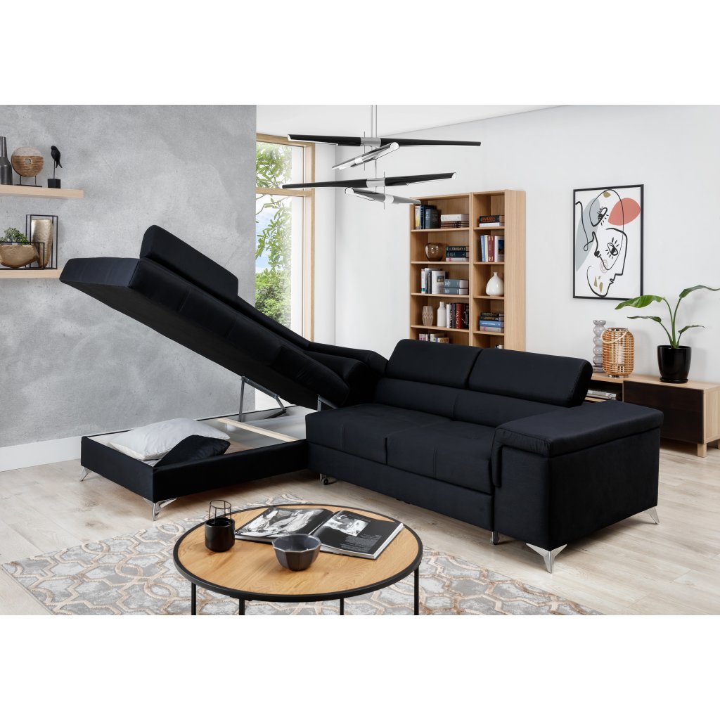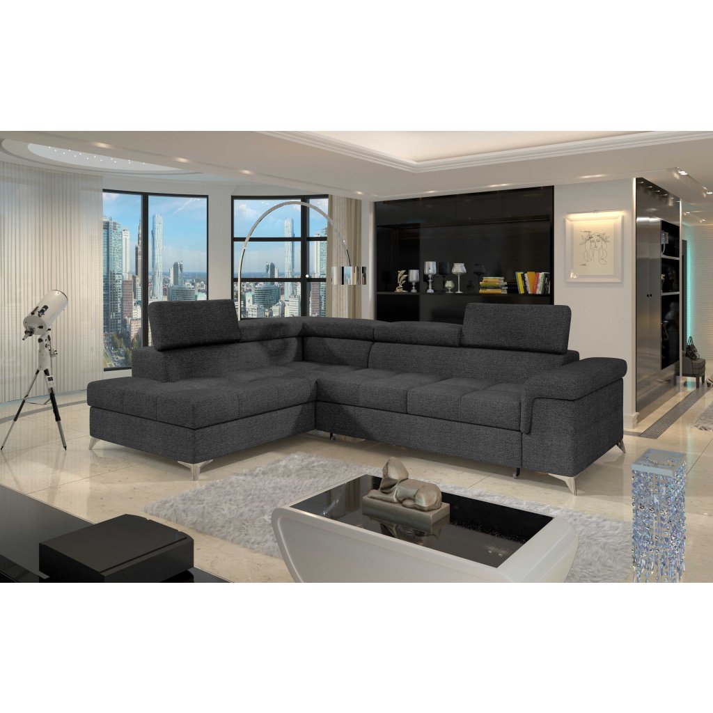 Az ERIDANO sarokkanapé egy prémium termék, amely segít megtapasztalni az igazi kényelmet . A klasszikus L-alakú elrendezést modern, a használat kényelmét befolyásoló elemekkel és rendkívül stílusos díszítőelemekkel ötvözik, mint például a fém, magasfényű króm lábak. Tágas ülések, megfelelően formázott háttámla, további mozgatható fejtámlákkal, széles karfa - mindez kellemesebbé teszi otthona nyugalmát. Az Eridano sarokkanapé a legmagasabb minőségű anyagokból készült. Prémium bútordarabként rendkívül ellenálló a kopással és elhasználódással szemben. Mindez a gondosan válogatott kárpitanyagoknak és a tömör üléstöltetnek köszönhető - a hullámrugós kialakítás a T30 habbal és a kiváló minőségű, rugalmas HR habbal kombinálva kivételes puhaságot és rugalmasságot biztosít, ami a test megfelelő alátámasztásában tükröződik pihenés közben. Az Eridano kanapégarnitúra 125 x 193 cm-es alvórésszé hajtható ki. A lábtartóban található praktikus tárolódobozzal is fel van szerelve, amely felfelé nyílik.