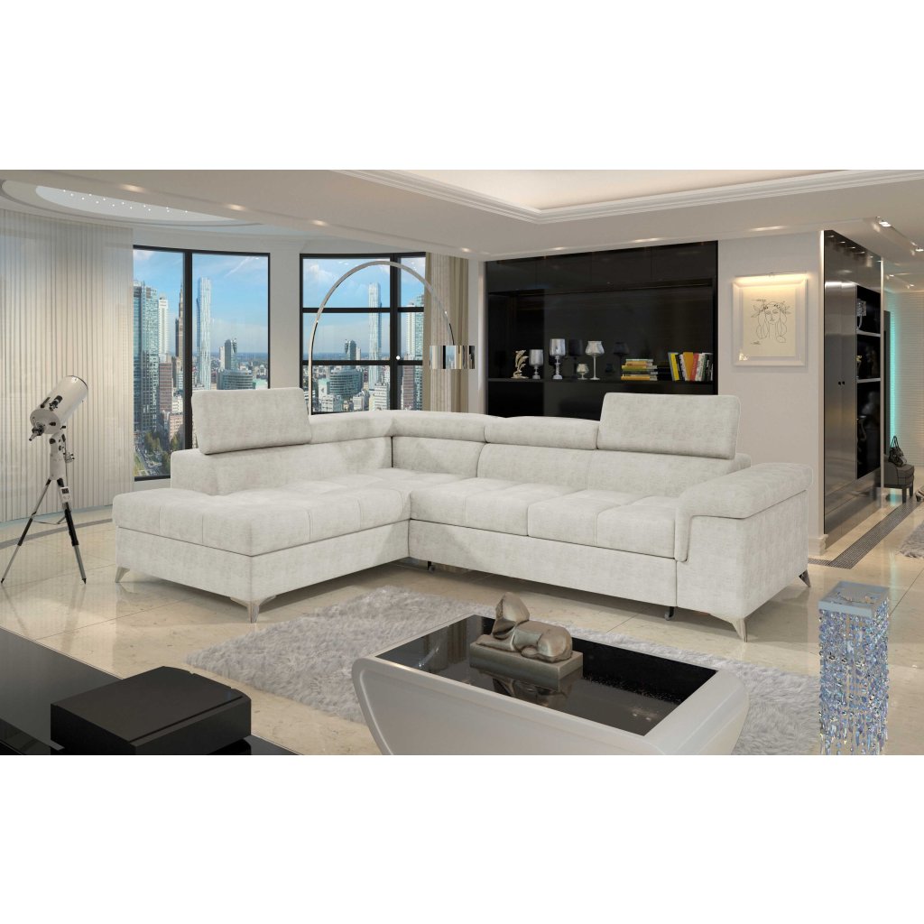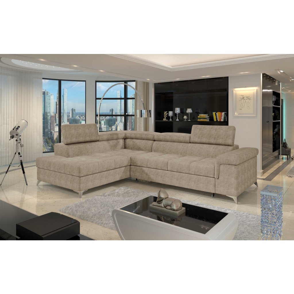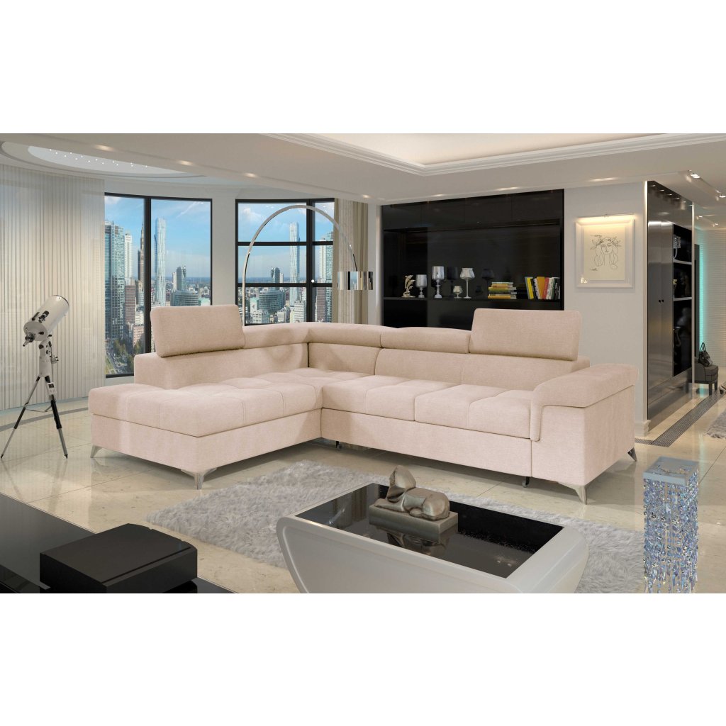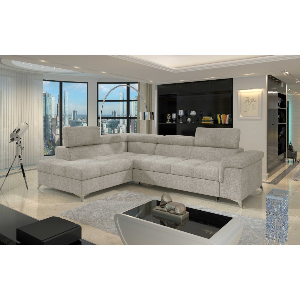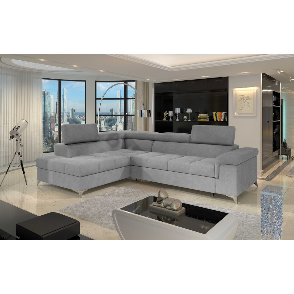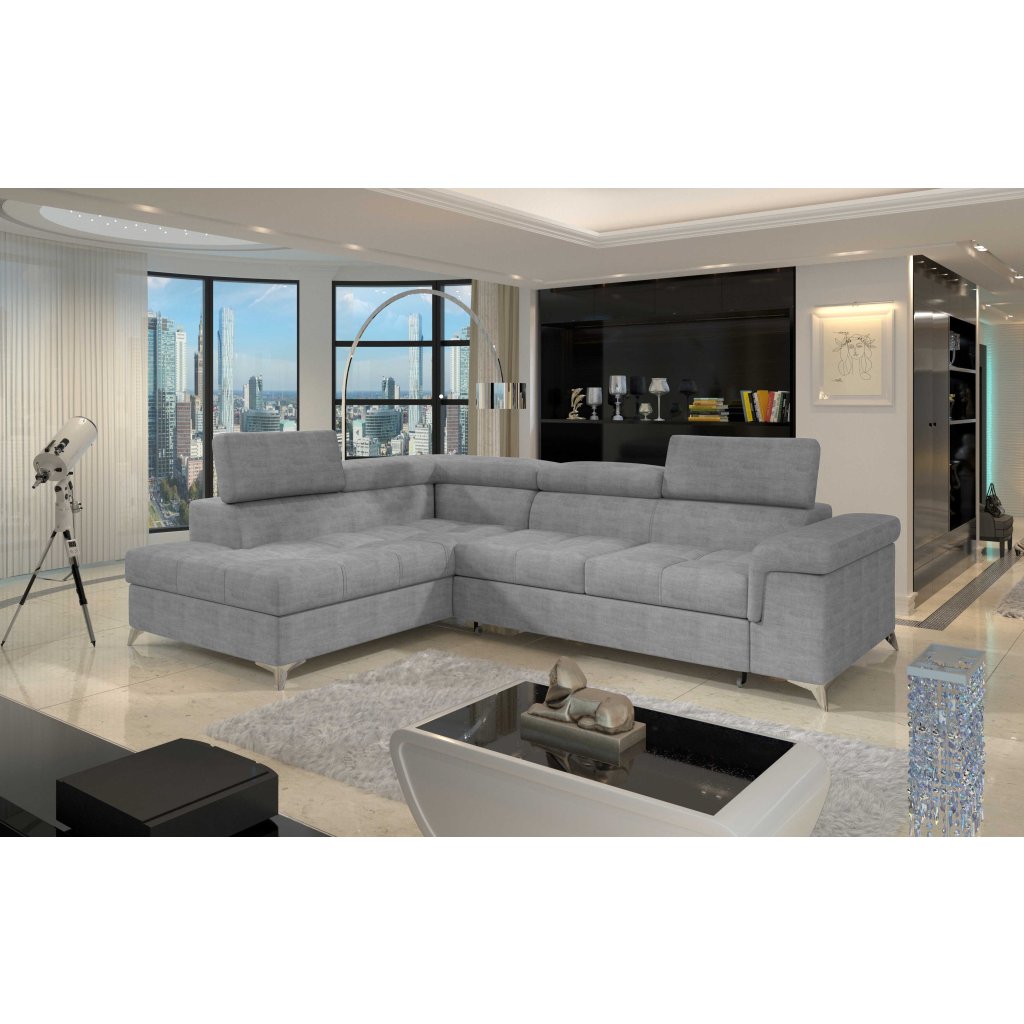 Az ERIDANO sarokkanapé egy prémium termék, amely segít megtapasztalni az igazi kényelmet . A klasszikus L-alakú elrendezést modern, a használat kényelmét befolyásoló elemekkel és rendkívül stílusos díszítőelemekkel ötvözik, mint például a fém, magasfényű króm lábak. Tágas ülések, megfelelően formázott háttámla, további mozgatható fejtámlákkal, széles karfa - mindez kellemesebbé teszi otthona nyugalmát. Az Eridano sarokkanapé a legmagasabb minőségű anyagokból készült. Prémium bútordarabként rendkívül ellenálló a kopással és elhasználódással szemben. Mindez a gondosan válogatott kárpitanyagoknak és a tömör üléstöltetnek köszönhető - a hullámrugós kialakítás a T30 habbal és a kiváló minőségű, rugalmas HR habbal kombinálva kivételes puhaságot és rugalmasságot biztosít, ami a test megfelelő alátámasztásában tükröződik pihenés közben. Az Eridano kanapégarnitúra 125 x 193 cm-es alvórésszé hajtható ki. A lábtartóban található praktikus tárolódobozzal is fel van szerelve, amely felfelé nyílik.