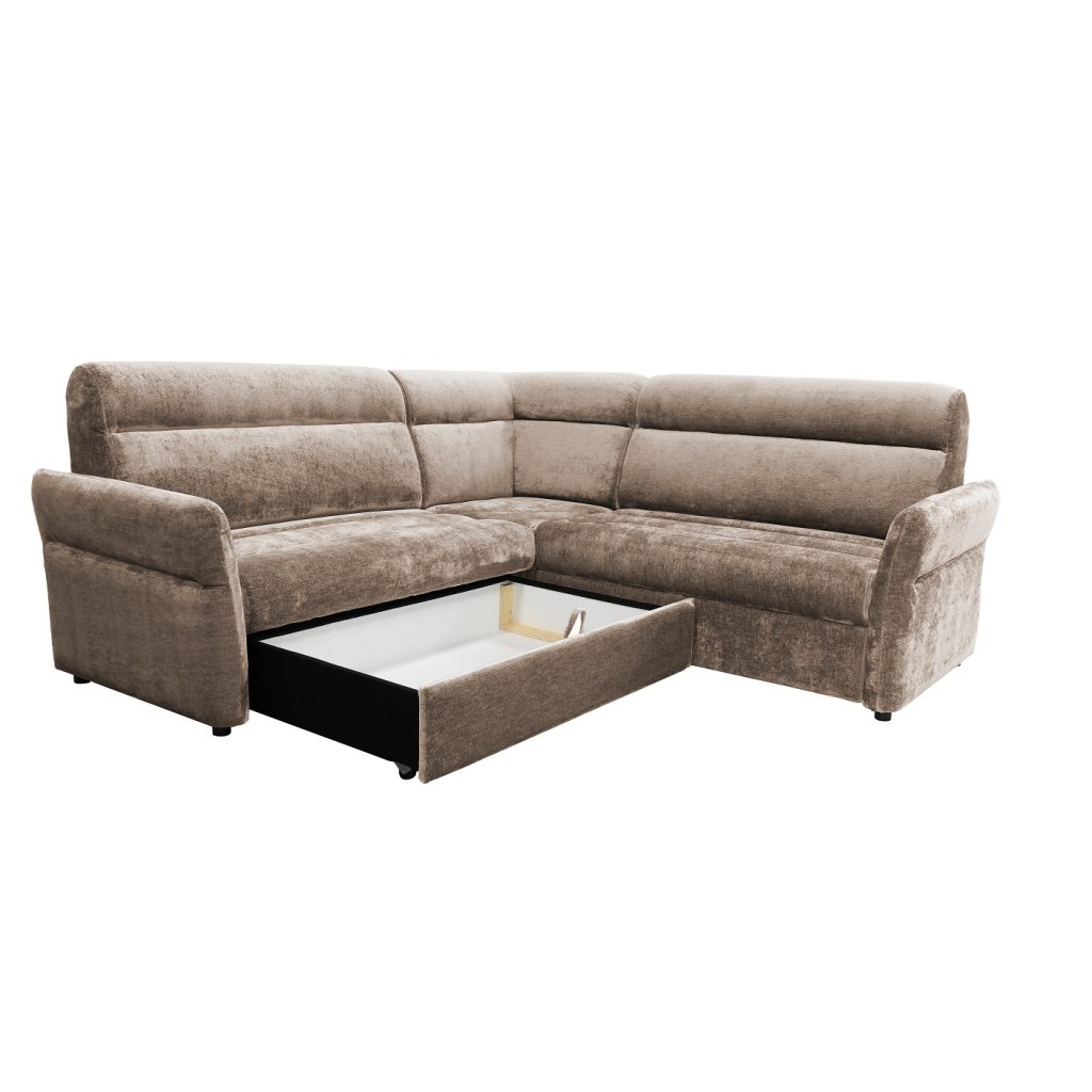 Az alvási lehetőséggel ellátott sarokülőgarnitúrák remek választás azok számára, akik olyan multifunkcionális és praktikus bútorokat keresnek, amelyek szűk helyen is elférnek, ugyanakkor kényelmesek az üléshez, alváshoz. A bal oldali változatban található SALVIA ülőgarnitúra nem csak ülésre, hanem alkalmi alvásra is kínál helyet. A kiváló minőségű konstrukció hátul is tartós szövettel van kárpitozva , a fekete fém lábak pedig luxus megjelenést kölcsönöznek a kanapénak. Kibontva a kanapé 128 x 185 cm-es hálófelületet és tágas tárolóhelyet kínál. A ülőgarnitúra halványbarna. Az ülőgarnitúra különböző árcsoportokból különböző anyagokból készülhet, az ár a legalacsonyabb árcsoportra érvényes. A végső árat e-mailben küldjük el.