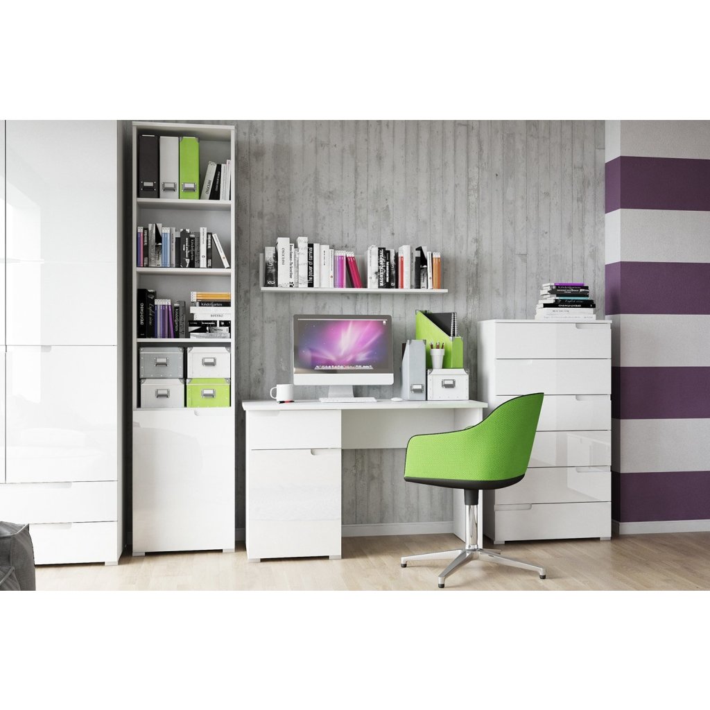 Az időtlen SELENE hálószoba ízléses kiegészítője lesz otthonodnak. A magasfényű fehér ajtódizájn eleganciát és luxust kölcsönöz a hálószobának. Egy kényelmes ágy gondoskodik a pihentető pihenésről, egy fésülködőasztal és egy gardróbszekrény rengeteg helyet biztosít minden holmidnak. Modern és elegáns megjelenésű, hálószobádat varázslatos hellyé varázsolva, amely alkalmas a pihenésre és a kikapcsolódásra. Az ajánlat tartalmaz egy ágyat éjjeliszekrényekkel, egy fésülködőasztalt és egy gardróbot. A Selene kollekció fogantyú nélküli rendszerrel rendelkezik. A stílusos Selene gardróbszekrény tágas tárolóhelyet kínál, alsó részén 2 fiókkal, felső részén pedig egy ruhaakasztó rúddal és 1 polccal.