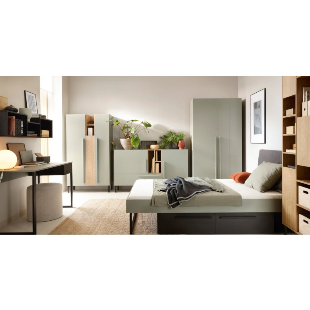 Az időtlen SERGIO SE5 szekrény egy egyszerű, modern és univerzális kollekciót képvisel, amely bármilyen belső térbe illeszkedik. Szekrény stílusos lábakkal és fogantyúkkal matt kivitelben. A bútorok kellemes eukaliptusz és balti tölgy színkombinációban kaphatók, amely lehetővé teszi az otthona más elemeihez való könnyű illeszkedést. Ez a bútor praktikus kiegészítő, amely több tárolóhelyet biztosít. A gardrób tágas, három ajtós polcos, tükör nélkül. Merítsen ihletet ajánlatunkból, és készítsen egyedi szobát gyermekeinek.