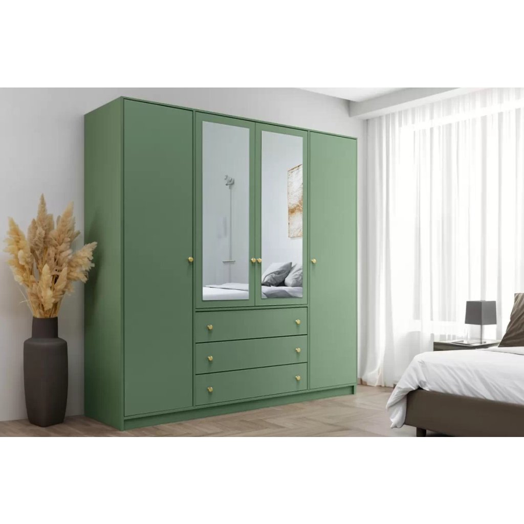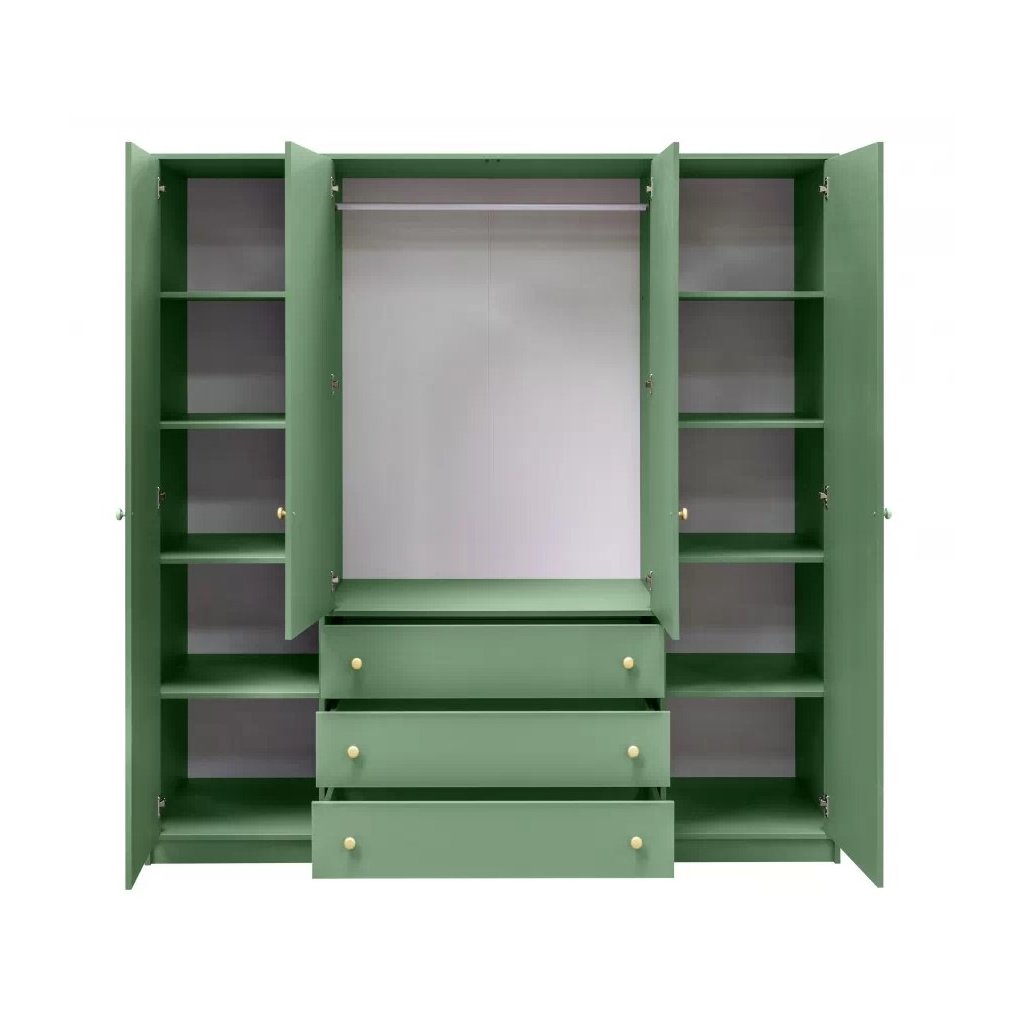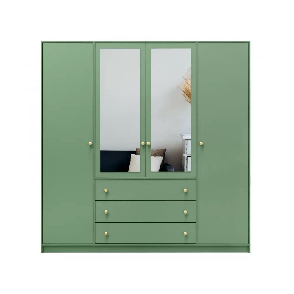 A SIENA színkollekció a modern stílus és a minimalizmus ötvözésével jött létre. SIENA gardrób A 2 D4 zöld színű, négy ajtóval és három tágas fiókkal rendelkezik. A szekrényhez tükör is tartozik. Kiemelkedik majd a belső térben. színének köszönhetően, A tükör optikailag megnöveli a szobát.