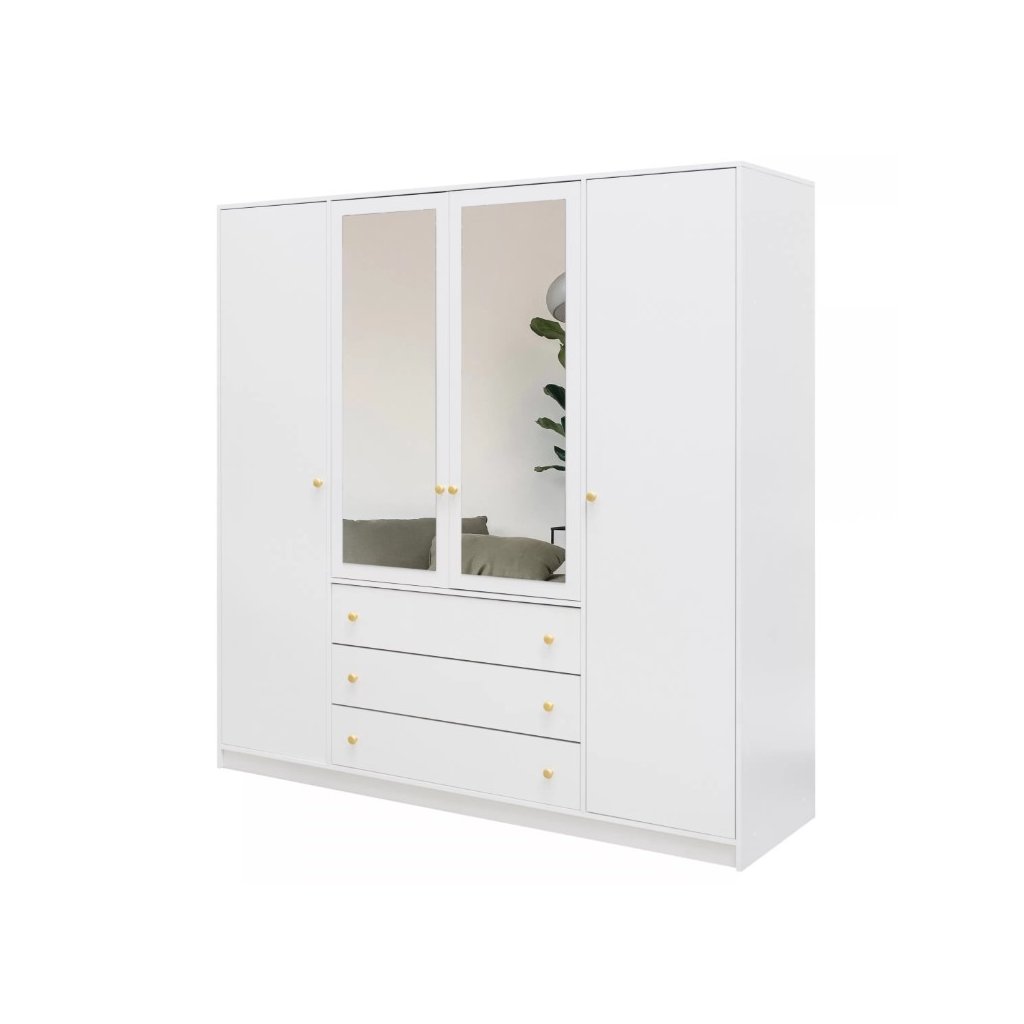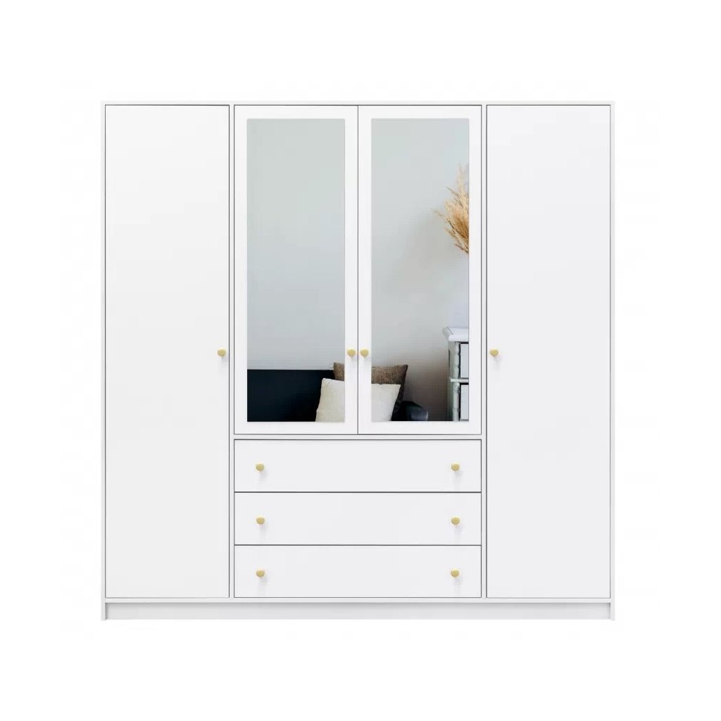 A SIENA színkollekció a modern stílus és a minimalizmus ötvözésével jött létre. SIENA gardrób A D4 fehér színű, négy ajtóval és három tágas fiókkal rendelkezik. A szekrény tükörrel is rendelkezik. Kiemelkedik a belső térben. színének köszönhetően, A tükör optikailag megnöveli a szobát.