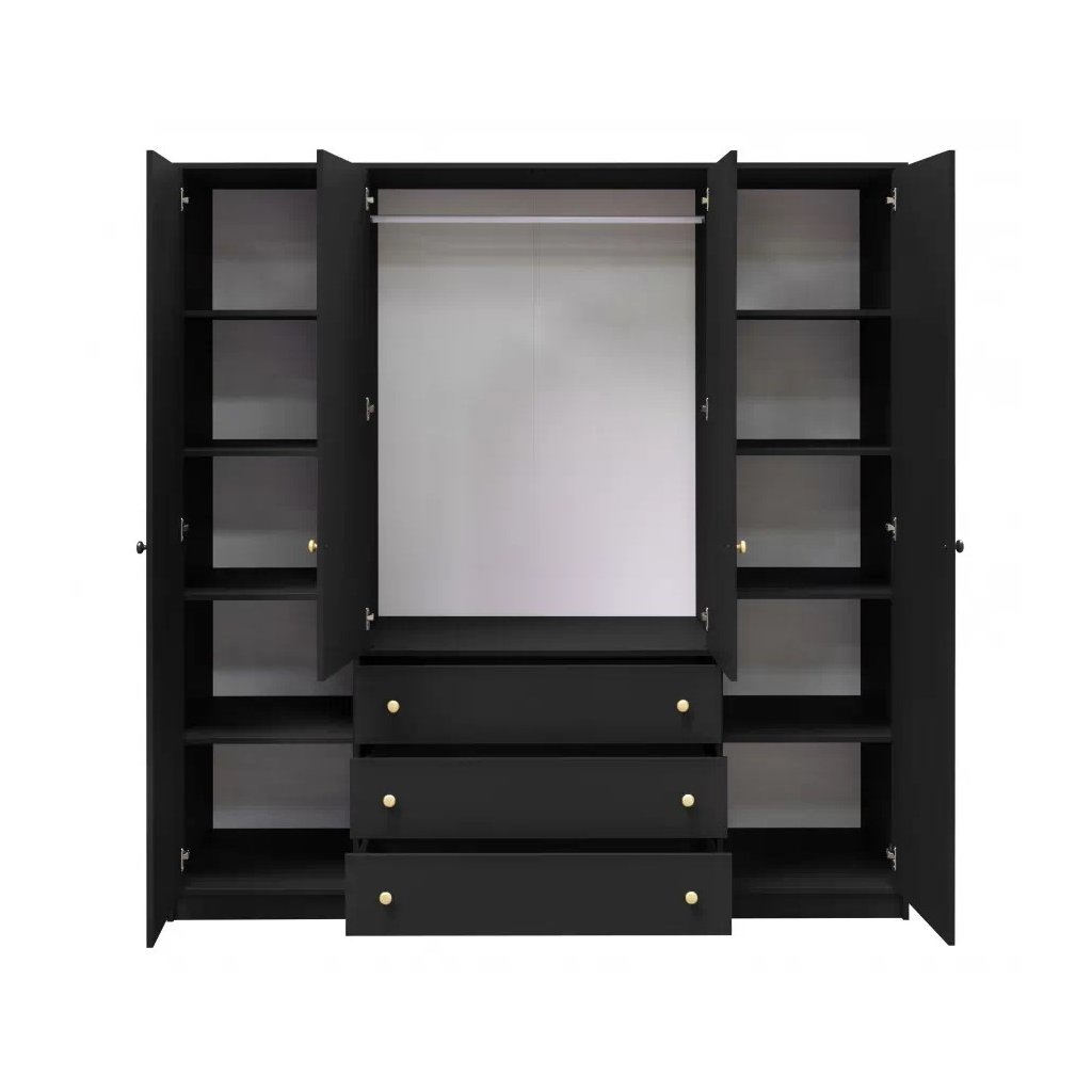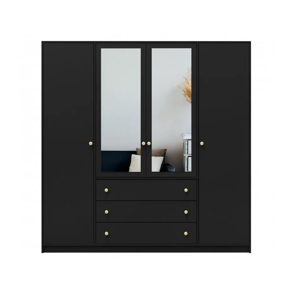 A SIENA színkollekció a modern stílus és a minimalizmus ötvözésével jött létre. SIENA gardrób A D4 fekete színű, négy ajtóval és három tágas fiókkal rendelkezik. A szekrény tükörrel is rendelkezik. Kiemelkedik a belső térben. színének köszönhetően, A tükör optikailag megnöveli a szobát.