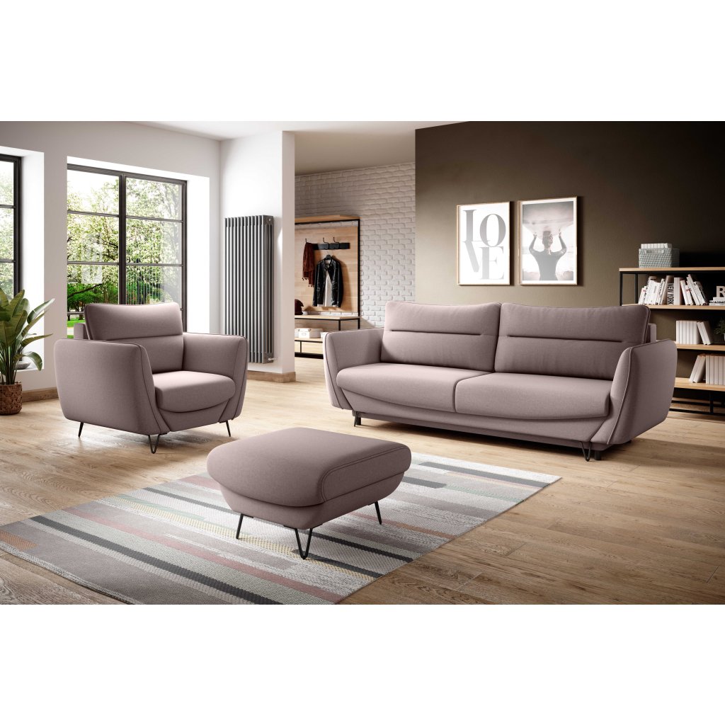 A modern SILVA szett szövettel kárpitozott . A puha HR T25 habszivacs és a B típusú hullámrugós szerkezet garantálja a kényelmes ülést. A kanapé háttámlája is teljes egészében kárpitozott. A karfák díszvarrással vannak díszítve . A kanapé lábai elöl acélból, hátul műanyagból készültek. Az automatikus DL mechanizmus, amely a kanapé kibontását segíti, gyors és kényelmes kibontást tesz lehetővé. A szett... Impregnálható vagy tisztítható, ha szennyezett.