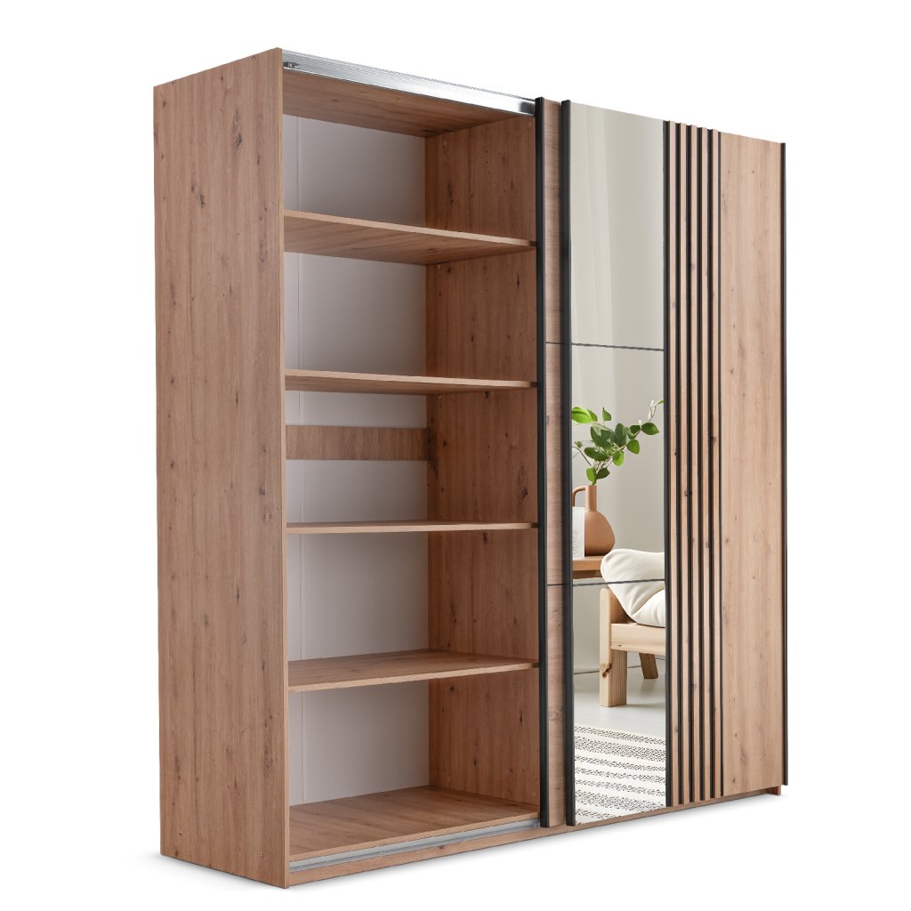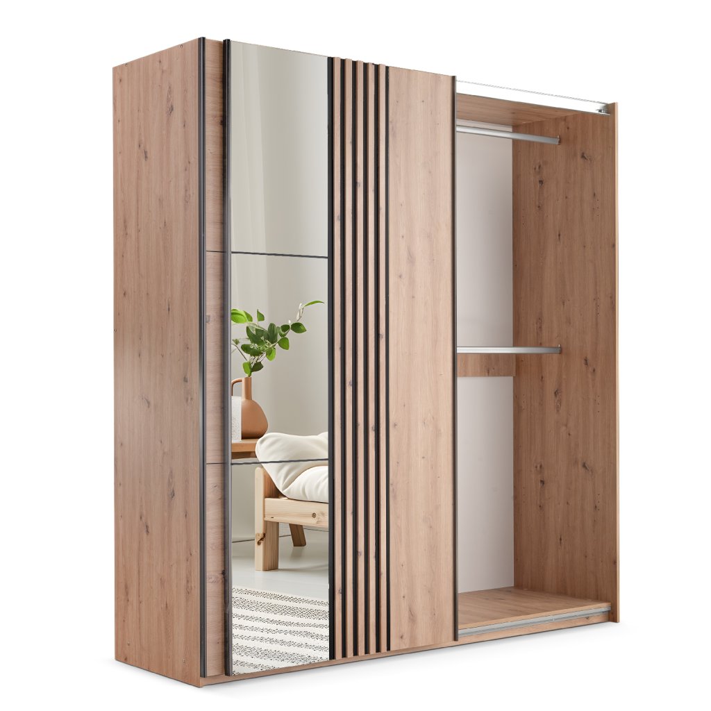 A SINTRA gardrób vonzó színvilággal készült, így minden háztartásba illik, és könnyen kombinálható. A gardrób nemcsak modern szettakat kínál, hanem praktikus tárolóhelyet is. A gardrób kiváló minőségű, tartós anyagból készült, amely hosszú élettartamot garantál. Ha hálószobájának rendkívüli dizájnt, ellenállhatatlan megjelenést és eredeti szettakat szeretne adni, a SINTRA 203 gardrób a megfelelő választás az Ön számára.
