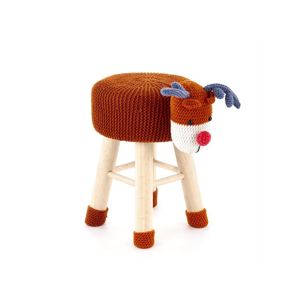 A Sobik 3 szék nélkülözhetetlen gyermekszobai elem minden gyerek számára. A négy fa lábon álló barátságos kisállat formája minden bizonnyal vonzó lesz. Úgy néz ki, mint egy játék, de valójában egy bútordarab. A Sobik 3 szék szövetből és fából készült. A puff lábai natúr fenyőfából készültek - előfordulhatnak természetes erezetek és csomók. A lábakon "zoknik" találhatók, amelyek dekoratív és védő célokat is szolgálnak. A teteje 42 cm átmérőjű henger alakú, rénszarvasfejjel és szarvakkal. Az anyag sűrű szövésű kötött anyag.