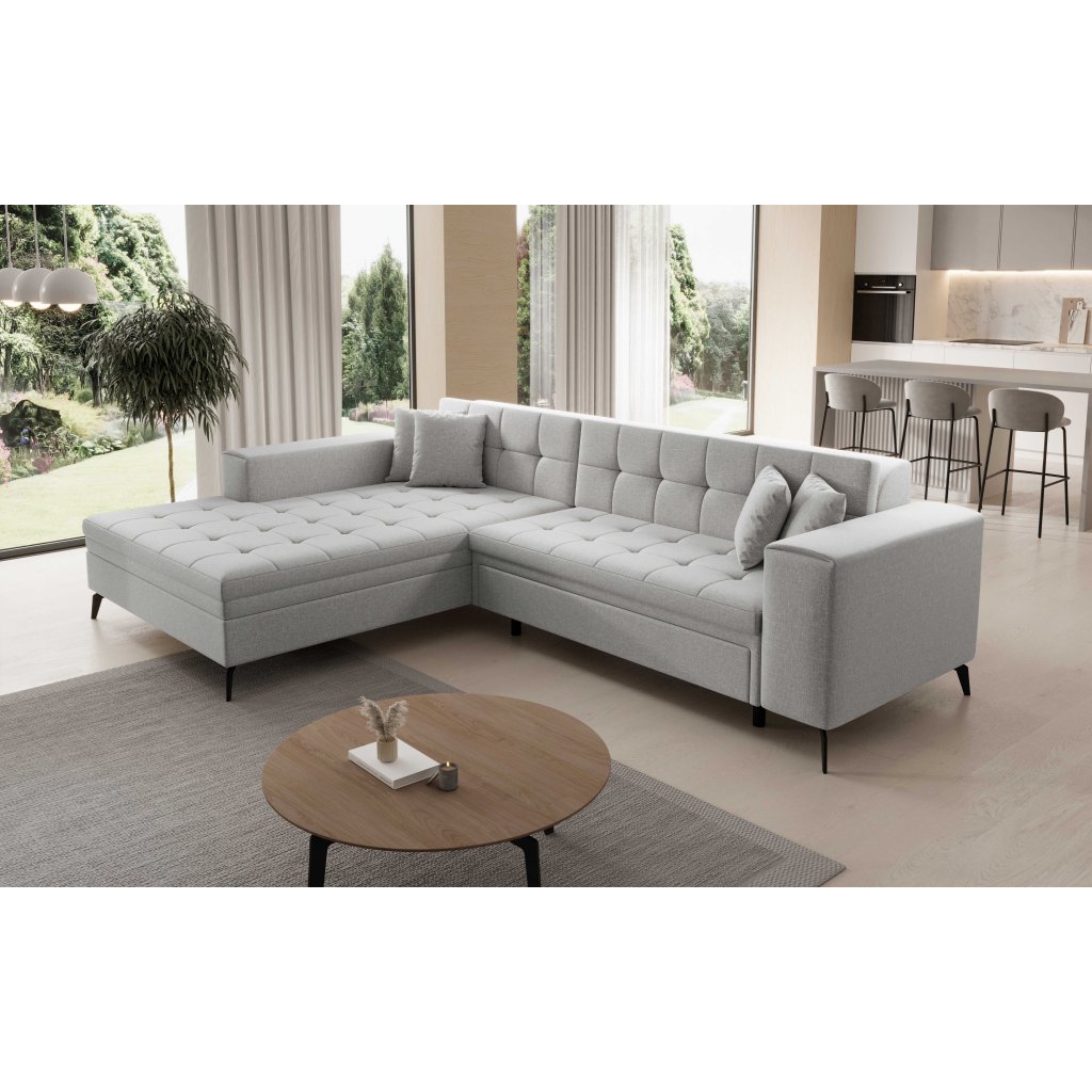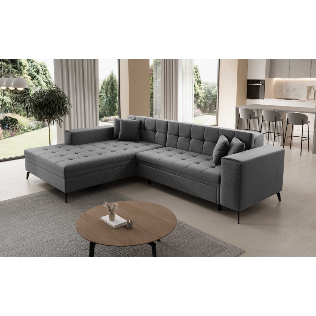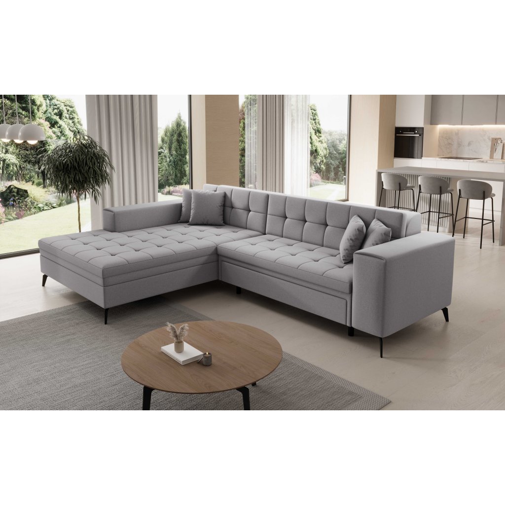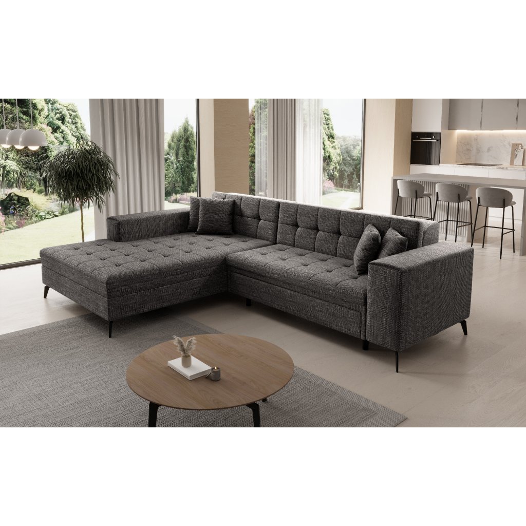 A modern belső tereket az egyszerűség és az elegancia jellemzi, a SOLANGE sarokkanapé tökéletesen illik ebbe a stílusba. Hagyományos és egyszerű elrendezésének köszönhetően a Solange kanapé igazi dominánsává válik a nappalinak. Tágas ülőfelület, megfelelően formált háttámla, enyhén lekerekített karfák - mindez teszi teljessé a kanapé esztétikáját. A stílusos, magas lábak és a háttámla és az ülőfelület teljes felületén elhelyezkedő finom varrás fokozza a vizuális élményt. A kanapé 210 x 126 cm- es hálórésszel rendelkezik . Helytakarékos is, mivel a háttámlája is kárpitozott.