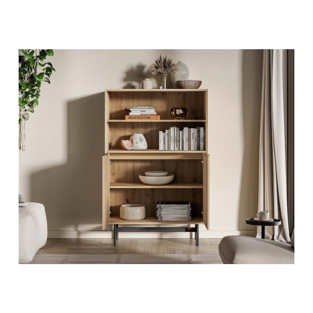 A SORENY 03 polcot modern belső terekbe tervezték, ötvözve az elegáns dizájnt , az egyszerűséget és a funkcionalitást. A Mavelie Natural tölgyfa dekor természetes és meleg megjelenést kölcsönöz a térnek, míg a minimalista forma időtlen karaktert kölcsönöz a bútornak. A bútor könnyű fém szerkezetre épül, ami légies és modern megjelenést kölcsönöz neki . A bútor praktikumát olyan funkcionális megoldások fokozzák, mint a nyomásra nyíló rendszer és a lágyan záródó zsanérok , amelyek kényelmes és csendes használatot biztosítanak. A polc nappali bútorokba készült, így egységes és harmonikus belső teret alakíthat ki az egész lakásban.