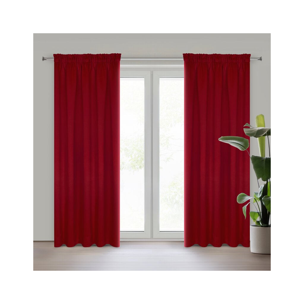 A kész matt sötétítőfüggöny szélessége: 135 cm, hossza: 270 cm, színe: piros, súlya: 210 GSM, összetétele: Anyaga: 100% poliészter