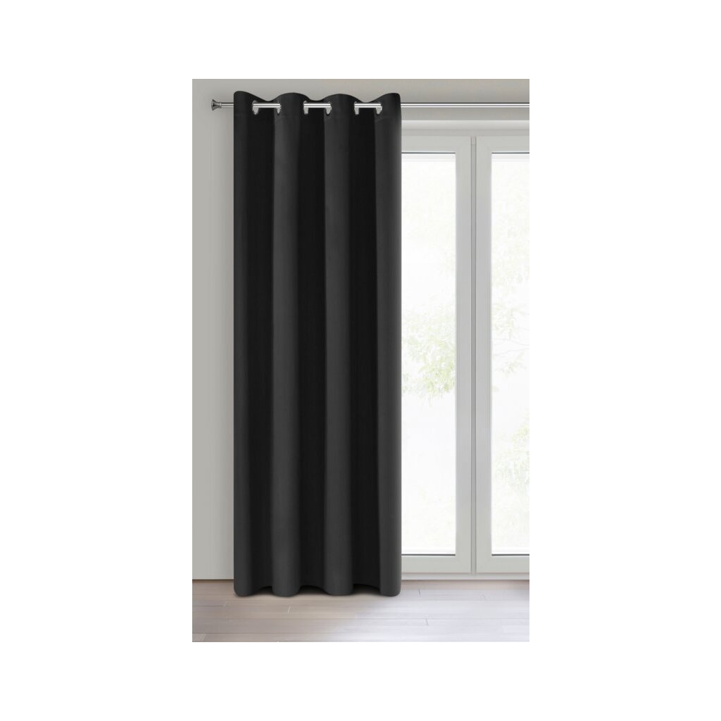 Sötétítő függöny szélessége: 140 cm, hossza: 270 cm, színe: fekete, súlya: 210 GSM, összetétele: Anyaga: 100% poliészter