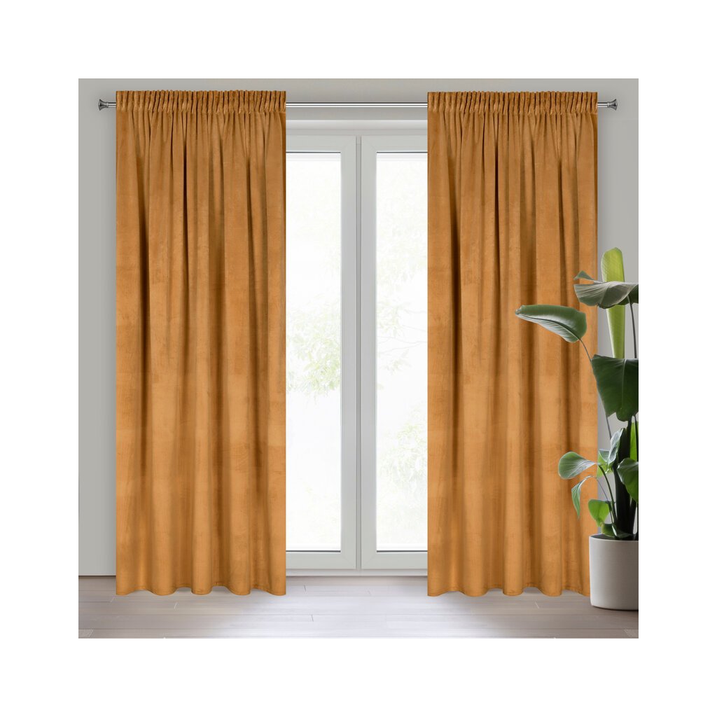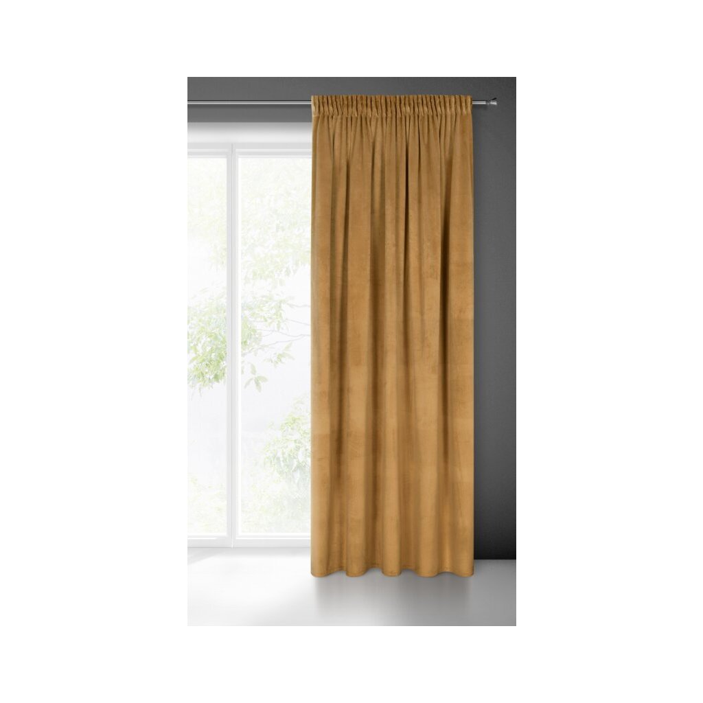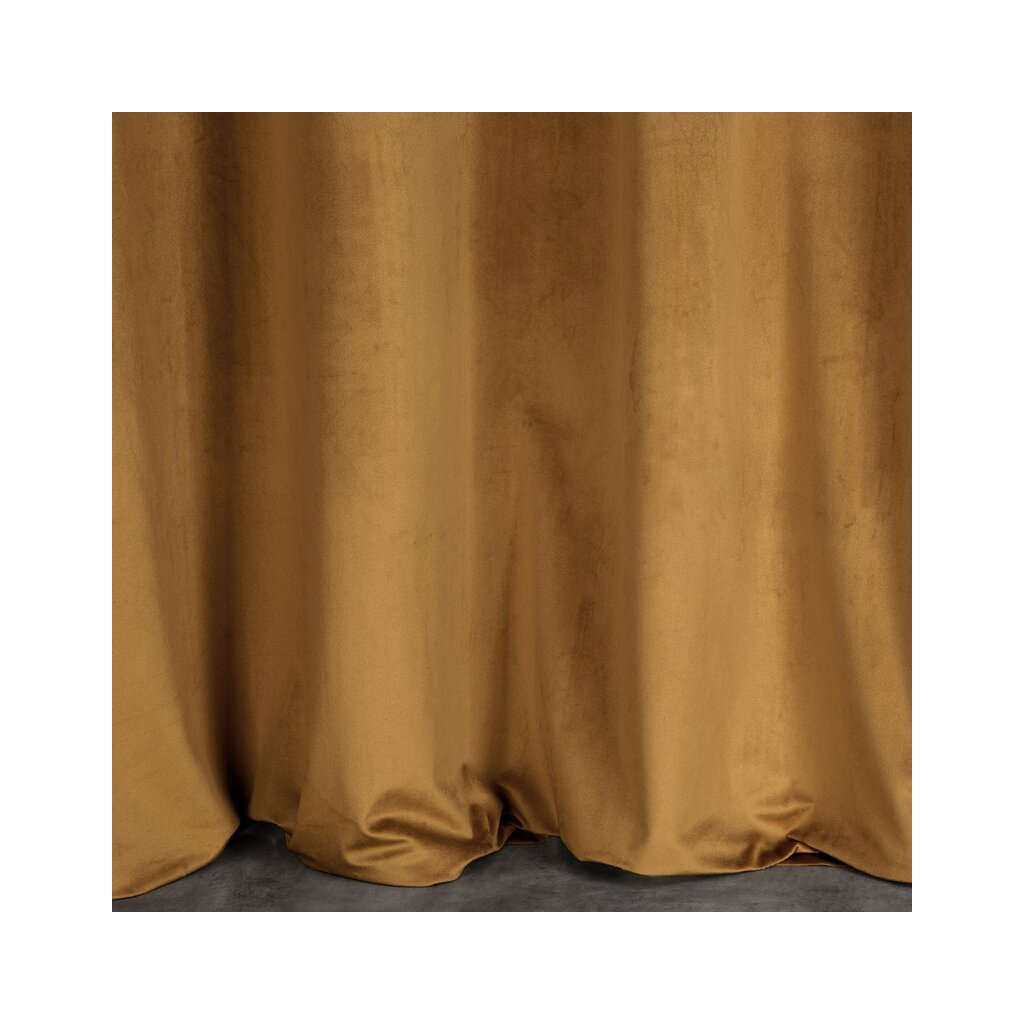 Puha bársony függöny matt felülettel. A puha, mérsékelt árnyékoló tulajdonságokkal rendelkező anyag elegáns megjelenést kölcsönöz a belső térnek. Szélesség: 140 cm, hossz: 270 cm, szín: méz, súly: 200 GSM, összetétel: Anyaga: 100% poliészter.