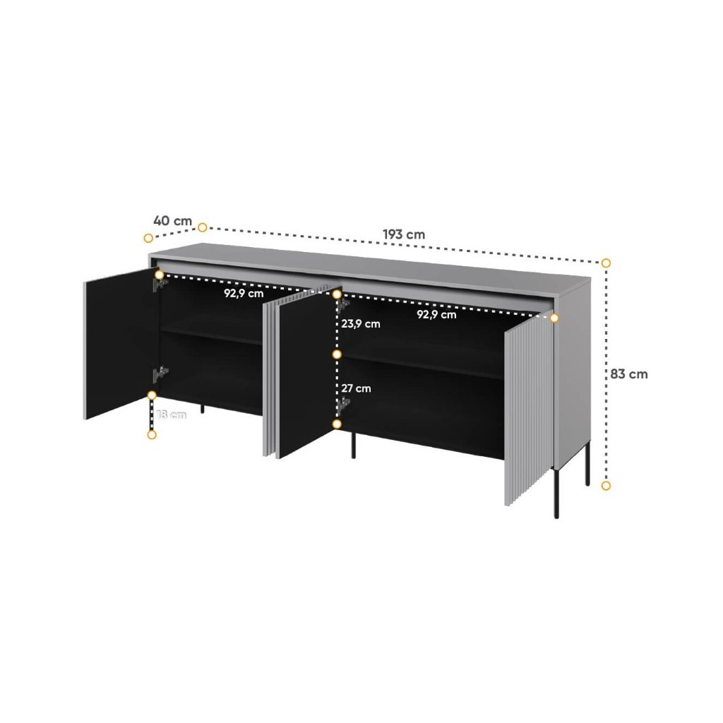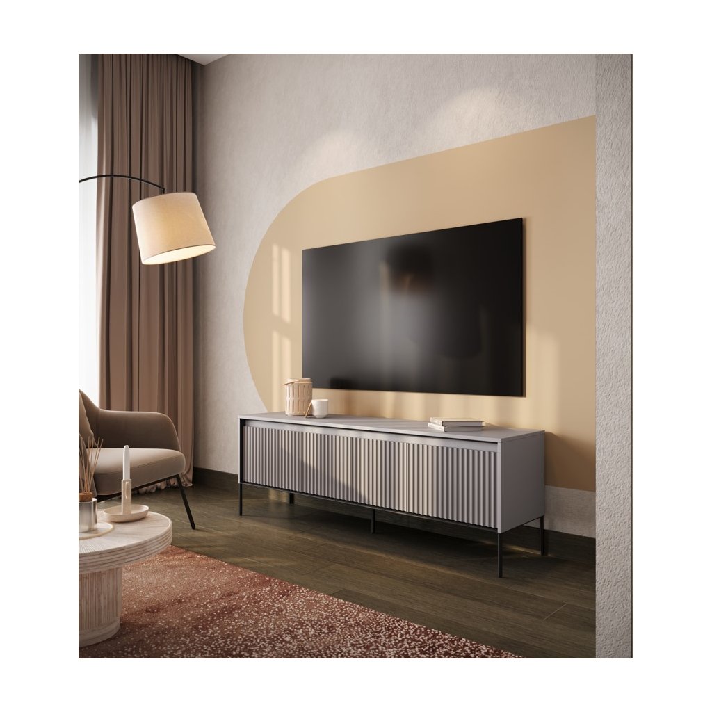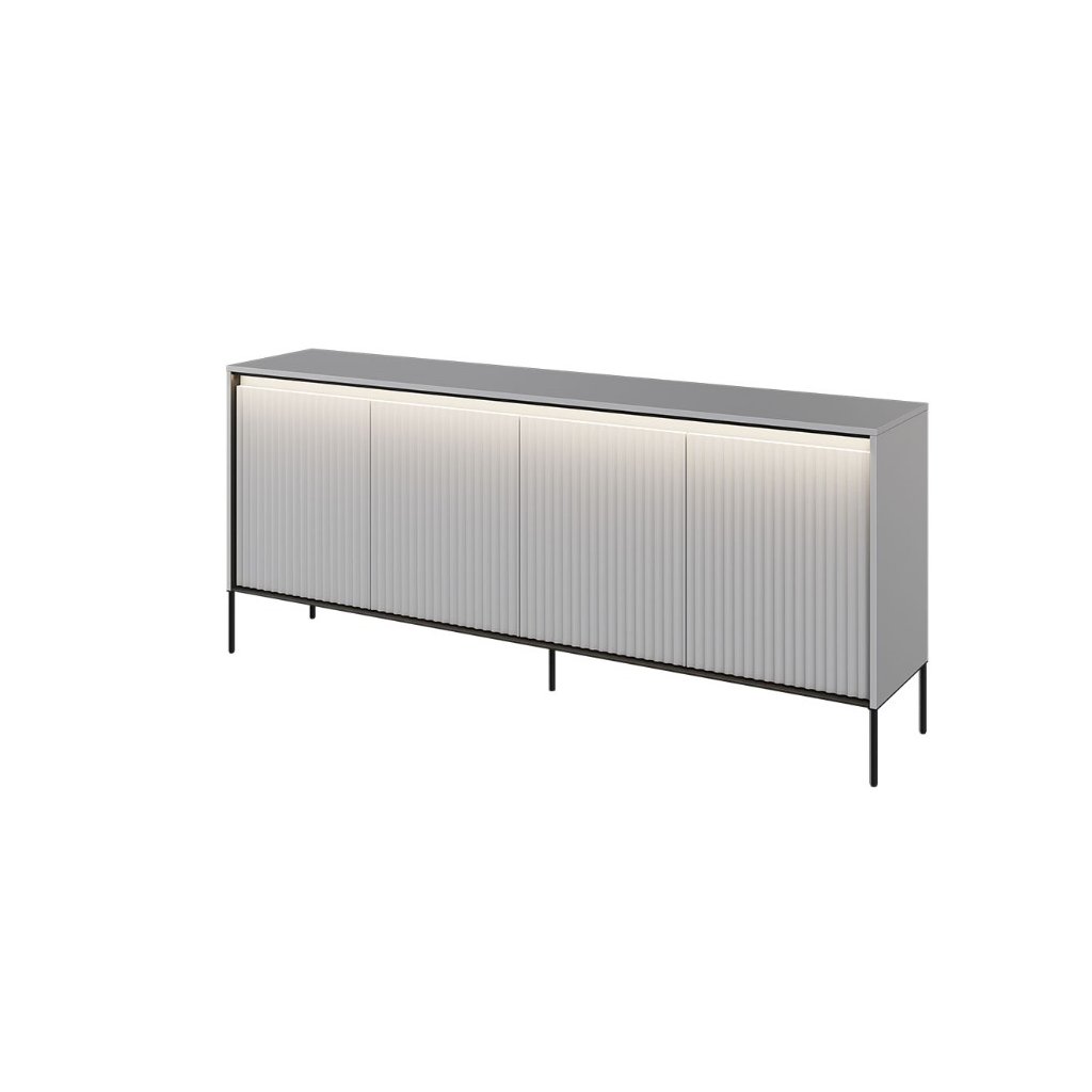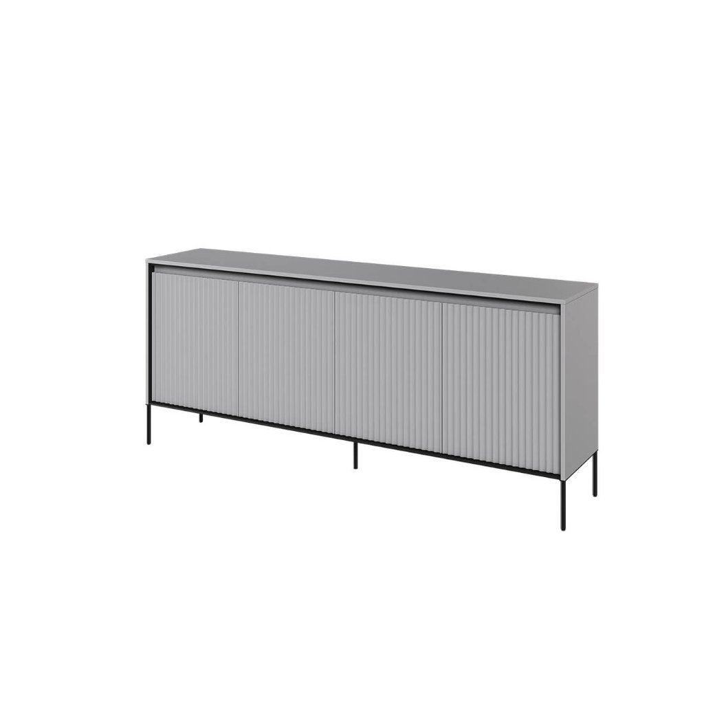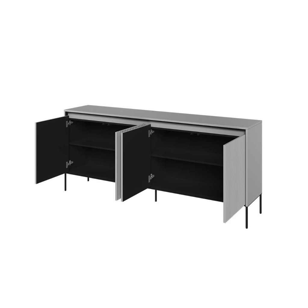 Az eredeti SWING TR-04 fiókos komód modern szürke színben , kiváló minőségű anyagokból készült. A fiókos szekrény NYOMÁSRA NYITÓ rendszerrel rendelkezik , amely lehetővé teszi a könnyű és kényelmes nyitást és zárást fogantyúk nélkül. A léces ajtódizájn egy újabb esztétikai elem, amely jellegzetes bájt és stílust kölcsönöz a helyiségnek. Az elegáns fekete fém lábak könnyedséget kölcsönöznek az összképnek, növelik a stabilitást és a tartósságot. A komód ára tartalmazza a LED világítást. A komód szétszerelt állapotban kerül kiszállításra.