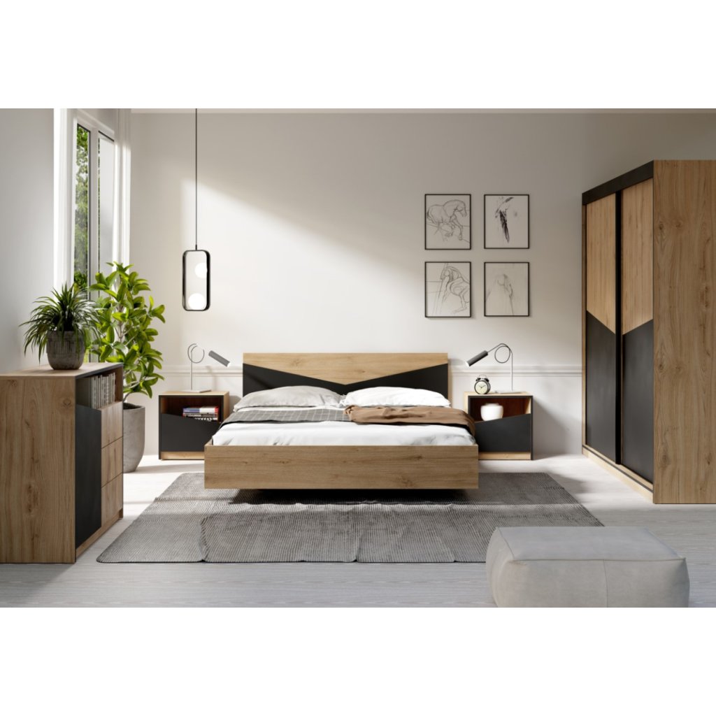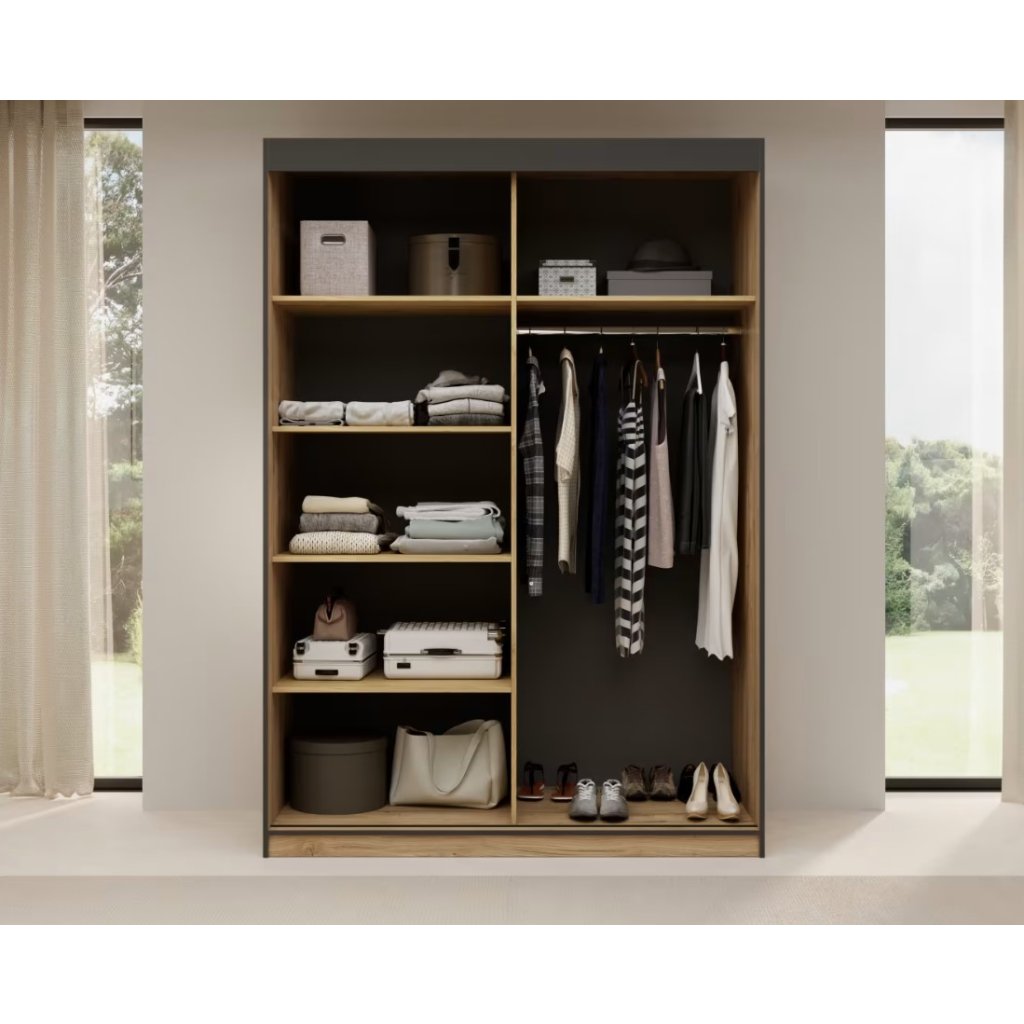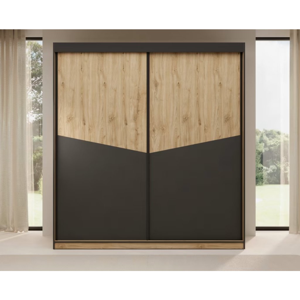 A tölgyfa dizájnú ATSON szekrény remek kiegészítője a különféle enteriőröknek – a klasszikustól a skandináv stíluson át a modern dizájnig. Ideális választás azok számára, akik a funkcionalitás és az esztétikus megjelenés kombinációját keresik , harmonikus és praktikus teret teremtve otthonukban. Gardrób kellemes tölgy színben, fekete kombinációval. A szekrény két 200 cm széles ajtóval rendelkezik.