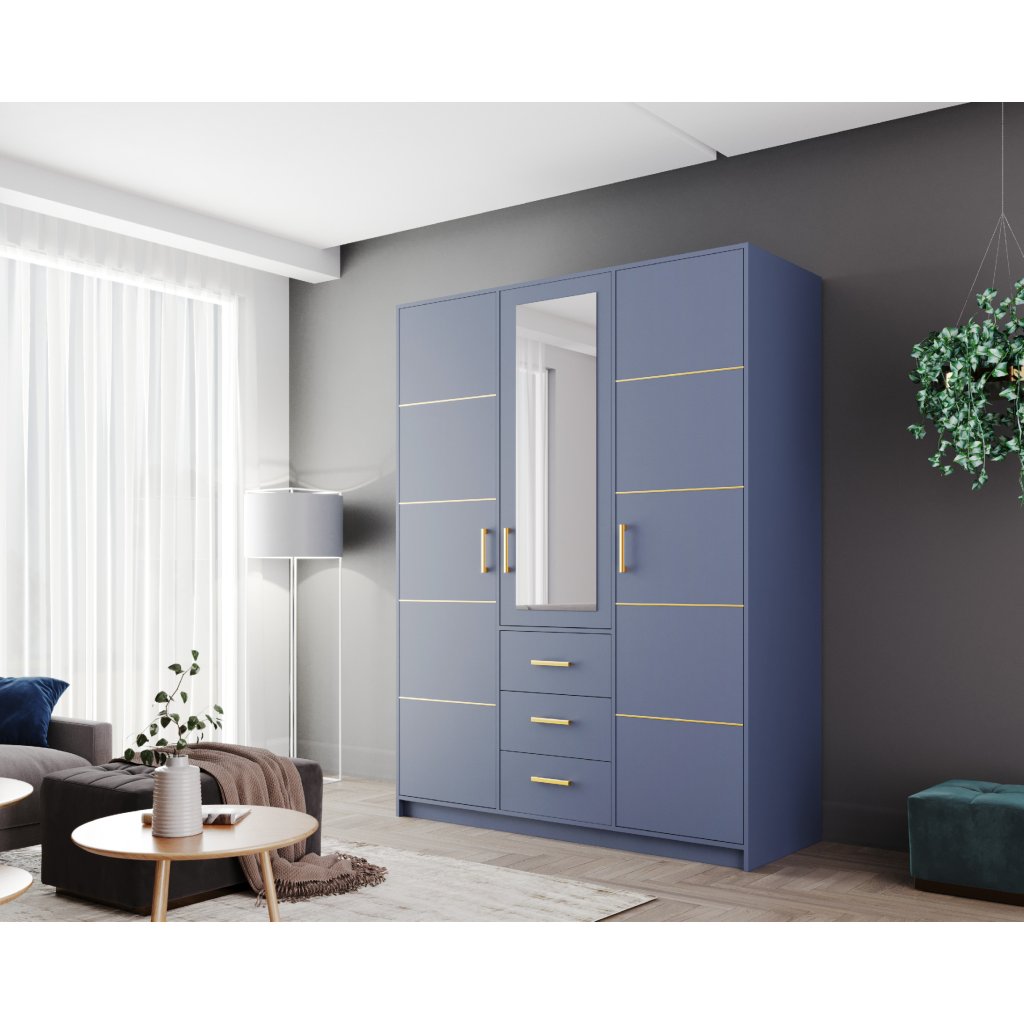 Tágas a BALI D4 gardrób egy darab extravagáns és dizájn. Ennek a stílusnak a szerelmesei találnak kedvükre valót. Gardrób Bali fiókokkal, polcokkal rendelkezik. A stílusos, arany színű fogantyúk friss színnel kombinálva kiemelkednek, és megkönnyítik a tárolt tárgyak elérését. A szekrény szép kék színű. Szerezzen örömet a gyerekeknek a gyerekszoba berendezése során , amelyet újjá kell élesztenie.