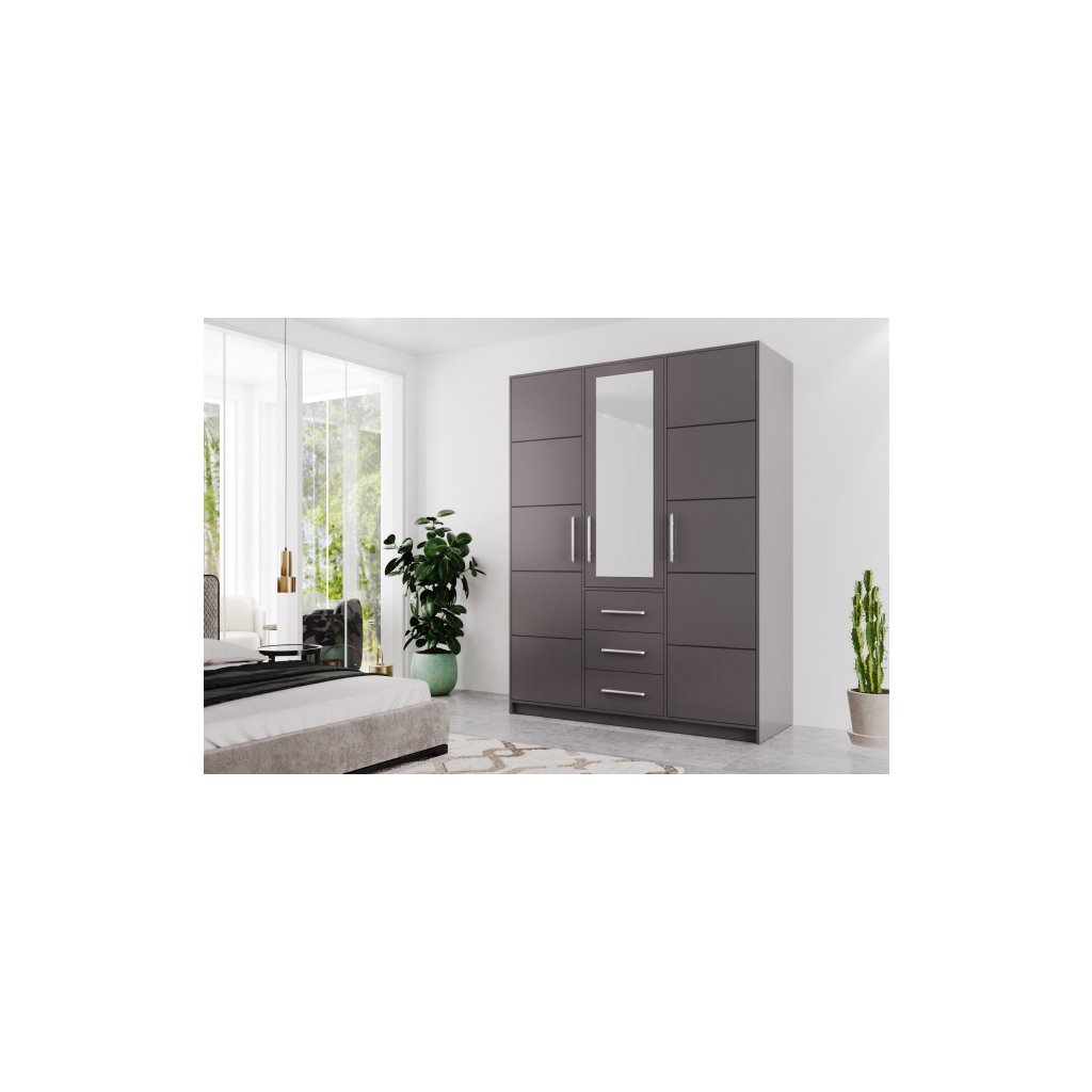 A tágas BALI D3 gardrób az extravagancia és a dizájn darabja. Ennek a stílusnak a szerelmesei találnak kedvükre valót. Gardrób Bali fiókokkal, polcokkal rendelkezik. Az elegáns ezüst színű fogantyúk a friss színnel kombinálva kiemelkednek, és megkönnyítik a tárolt tárgyak elérését. A szekrény szép grafit színű. Szerezzen örömet a gyerekeknek a gyerekszoba berendezése során , amelyet újjá kell élesztenie.