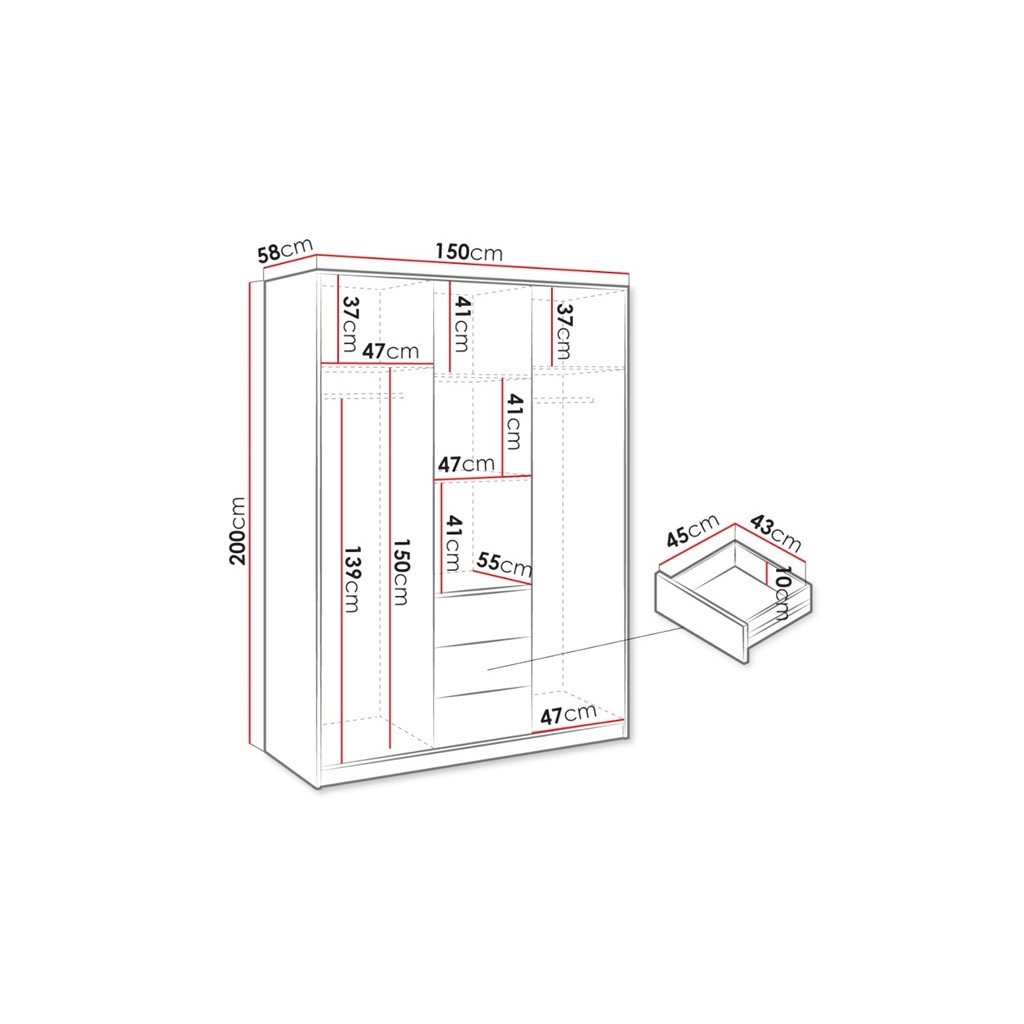 Elkészült a BALI LUX D3 gardrób kiváló minőségű laminált anyagokból . ABS él növeli sérülésekkel szembeni ellenállás és megvédi a bútort a nagyobb mechanikai igénybevételtől. A tükör a szekrényajtóra van ragasztva.