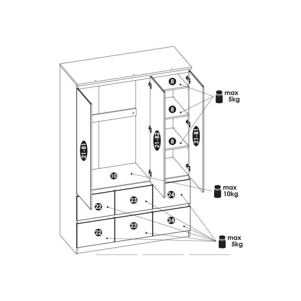 A Boston BOS S13 ruhásszekrény kiváló minőségű és tartós anyagokból készült. – a test LTD deszkákból és az ajtókból készült MDF táblák, amelyek garantálják a szilárdság és tartósság . A tisztítás gyors és egyszerű – csak használjon nedves ruhát vagy megfelelő bútortisztítót.